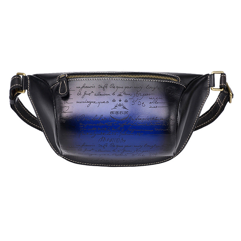 Tooled Blue Leather Fanny Pack Mens Waist Bag Hip Pack Belt Bag Bumbag for Men