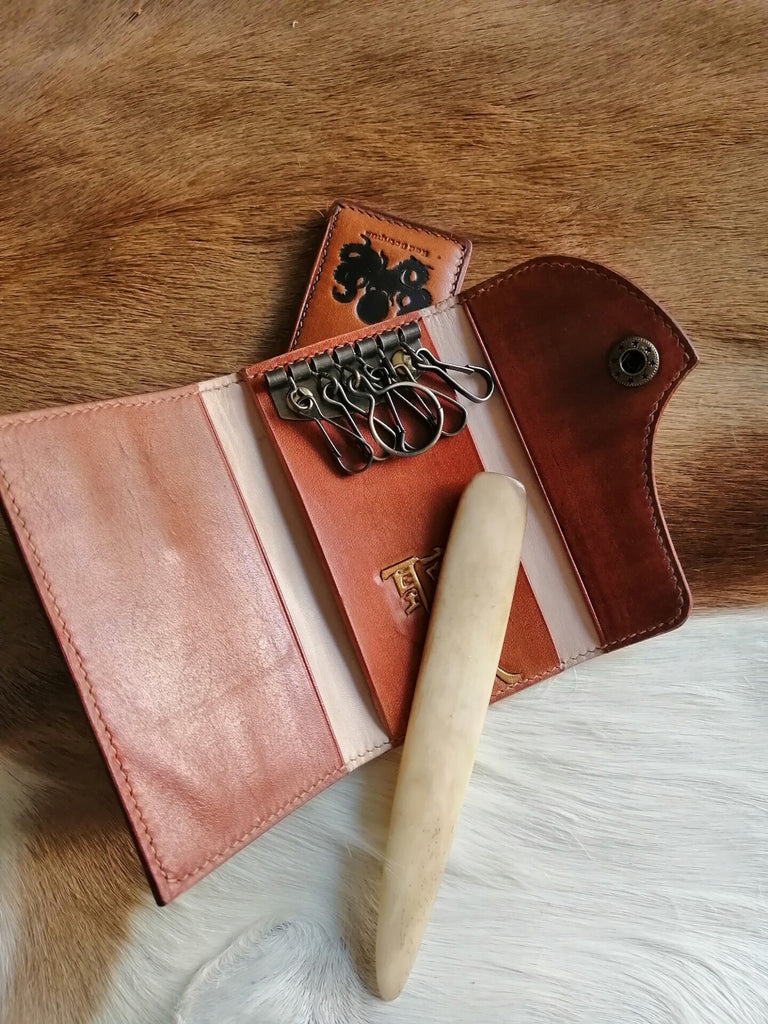 Elevate your everyday carry with our exquisite Tooled Leather Key Wallet, a masterpiece that marries traditional craftsmanship with practical design. Measuring 11cm x 5.5cm x 3cm, it’s compact yet capacious, crafted for those who appreciate unique, hand - finished accessories. This wallet is more than just a key holder—it’s a statement piece.