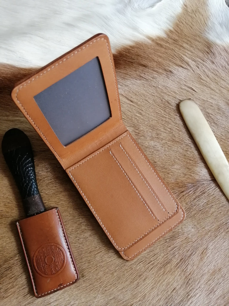 Style: Carp Leather Wallet ID Holder Wallet Mens Wallet with ID Window Carp Wallet Tooled Leather Wallet Card Wallet with ID Window