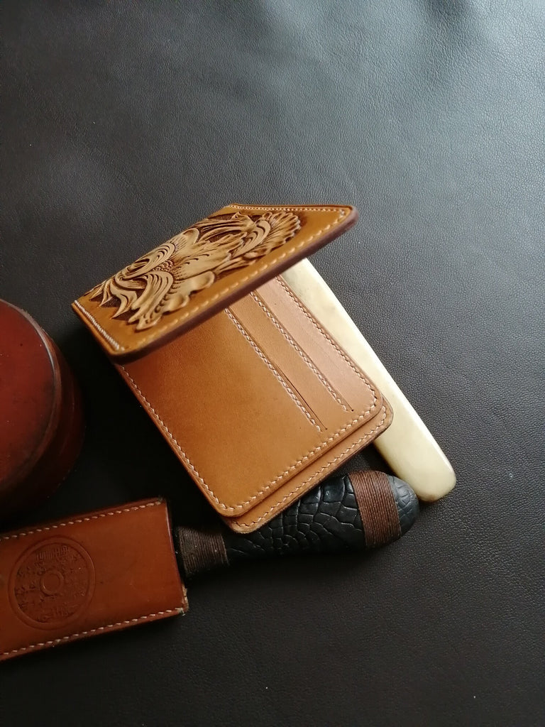 Design: Tooled Leather Wallet Card Wallet with ID Window Floral Leather Wallet ID Holder Wallet Mens Wallet with ID Window Floral Wallet