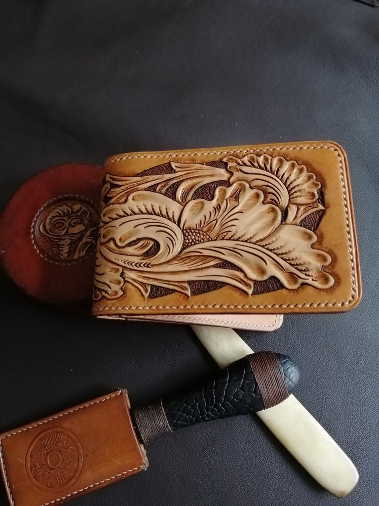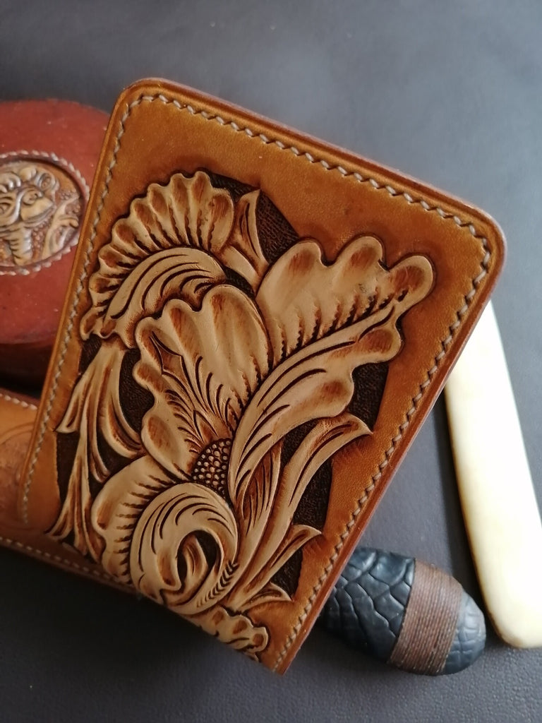 Style: Tooled Leather Wallet Card Wallet with ID Window Floral Leather Wallet ID Holder Wallet Mens Wallet with ID Window Floral Wallet