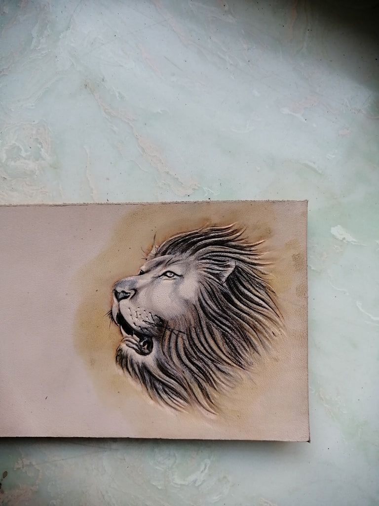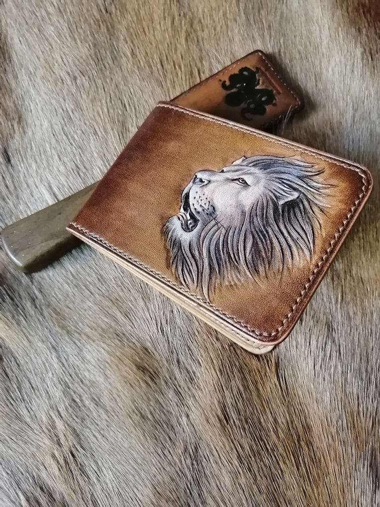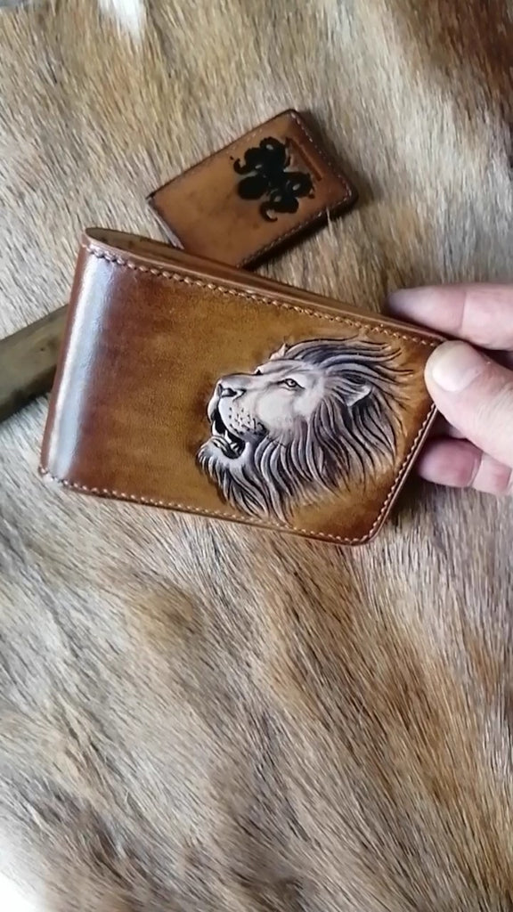 Design: Tooled Leather Wallet Card Wallet with ID Window Lion Leather Wallet ID Holder Wallet Mens Wallet with ID Window Lion Wallet