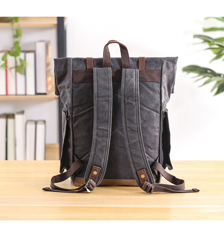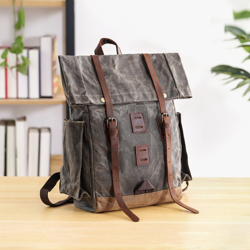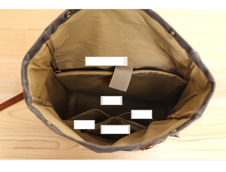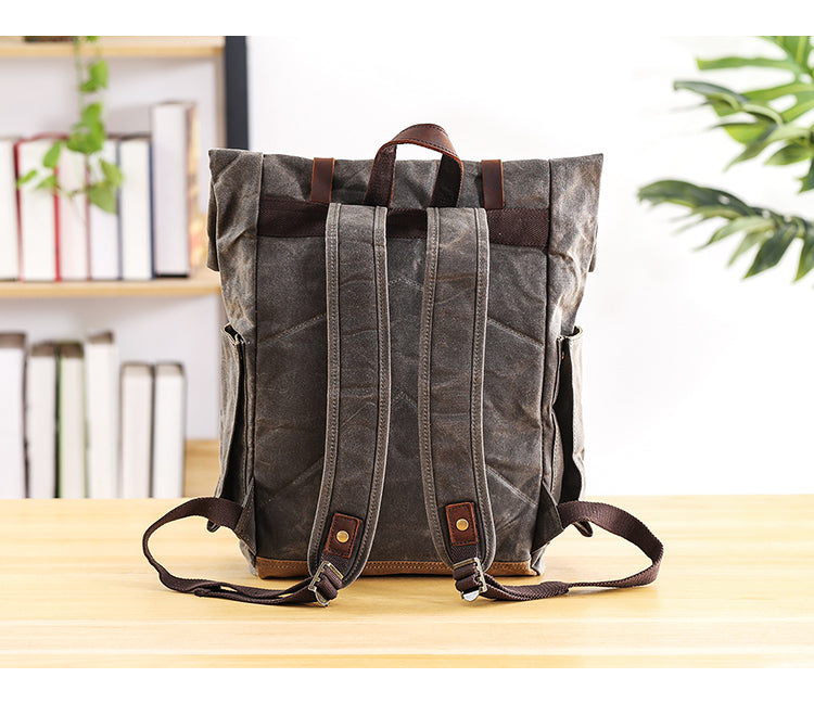 Style: Waxed Canvas Leather Mens 16‘’ Army Green Backpack Khaki Travel Backpack Dark Gray Hiking Backpack for Men