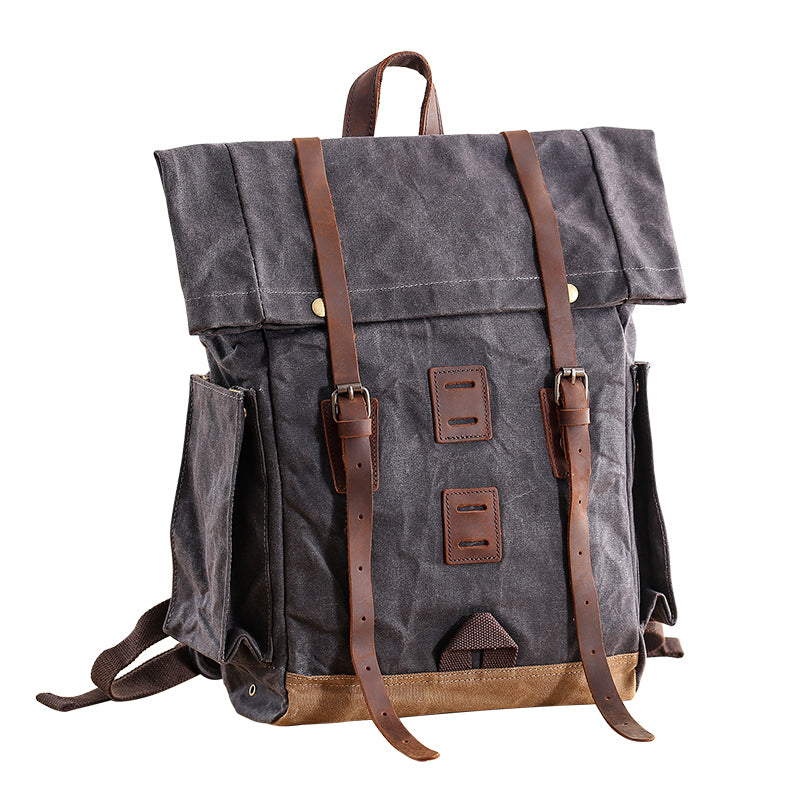 Design: Waxed Canvas Leather Mens 16‘’ Army Green Backpack Khaki Travel Backpack Dark Gray Hiking Backpack for Men