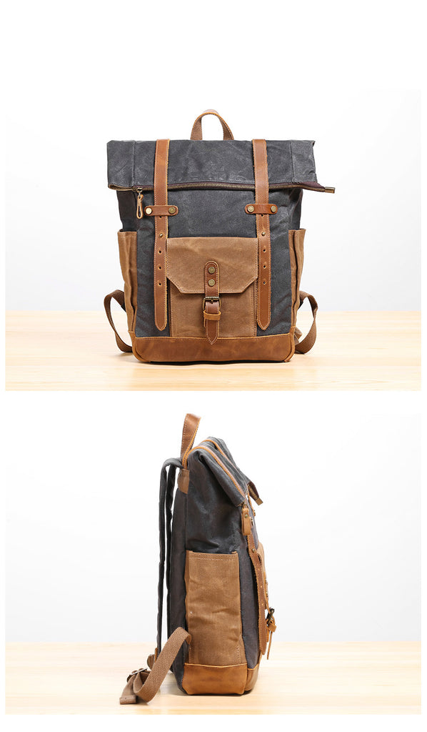 Style: Waxed Canvas Leather Mens 17‘’ Lake Green Backpack Khaki Travel Backpack Dark Gray Hiking Backpack for Men