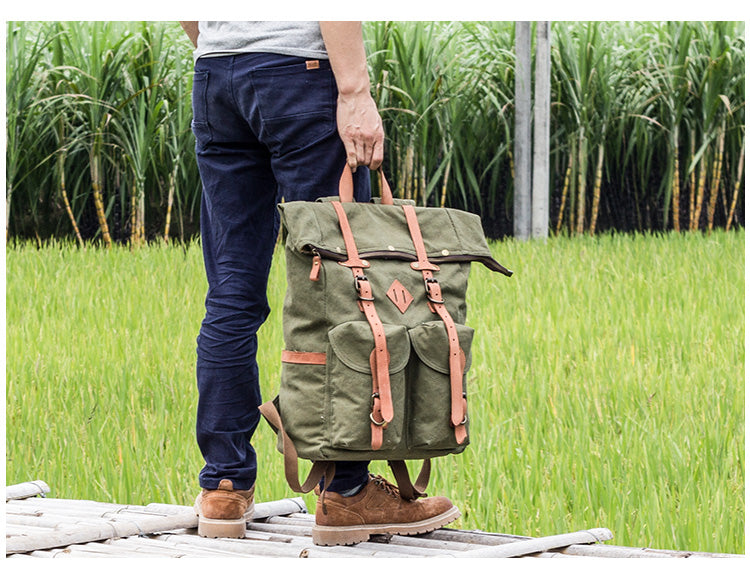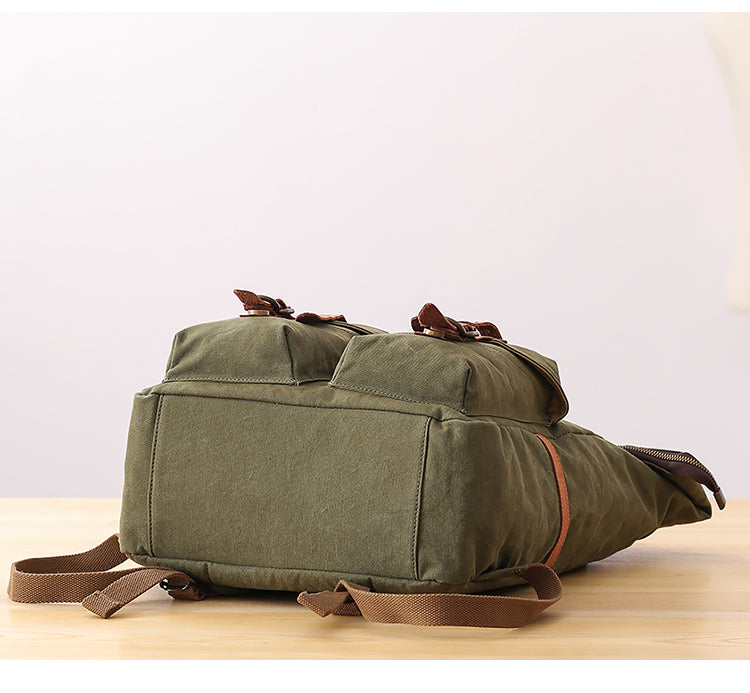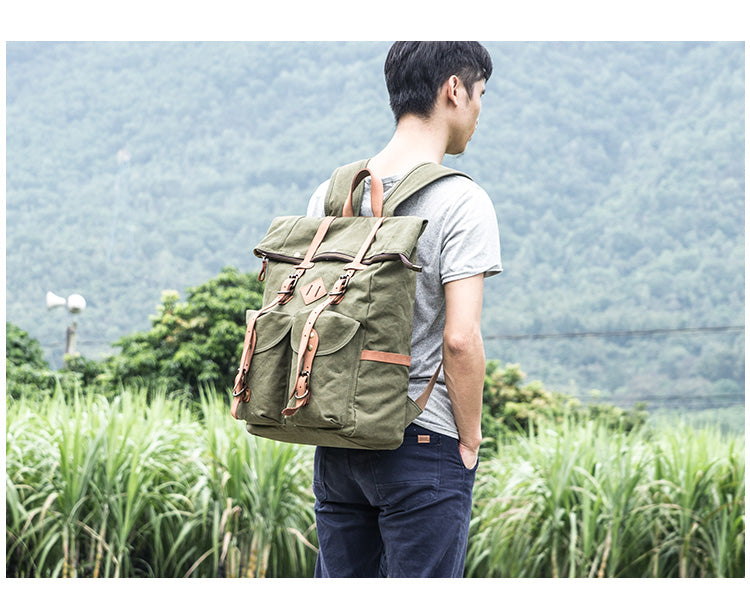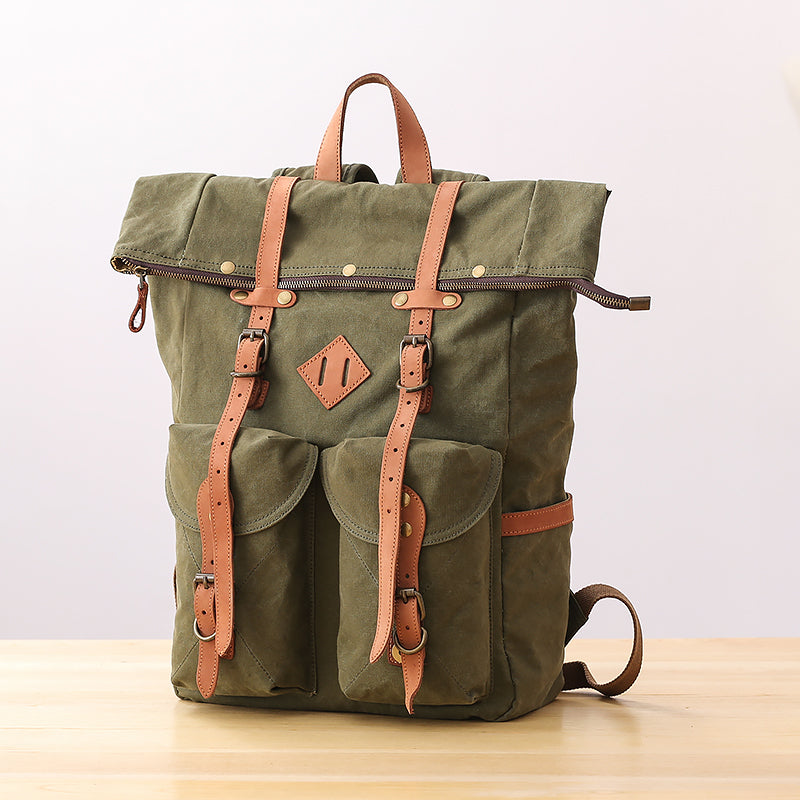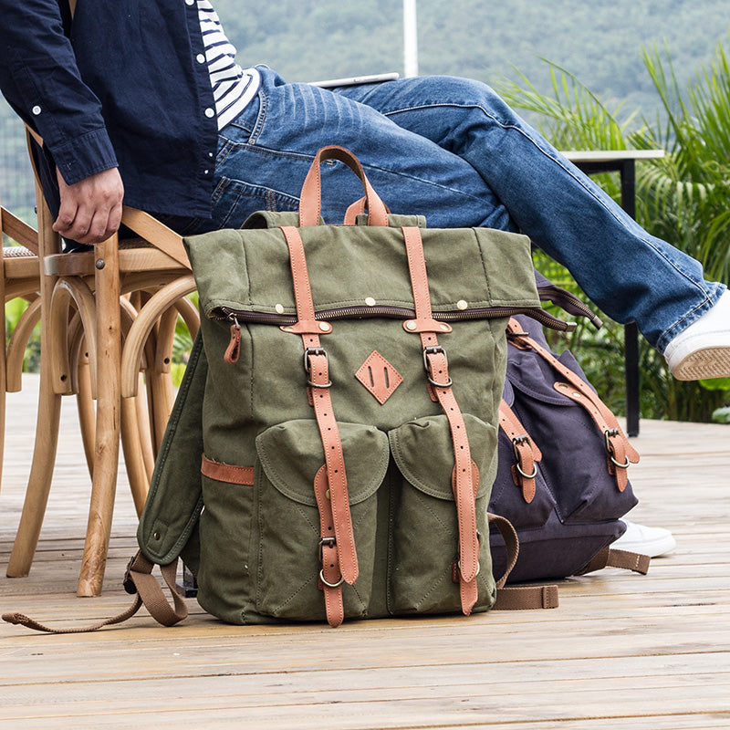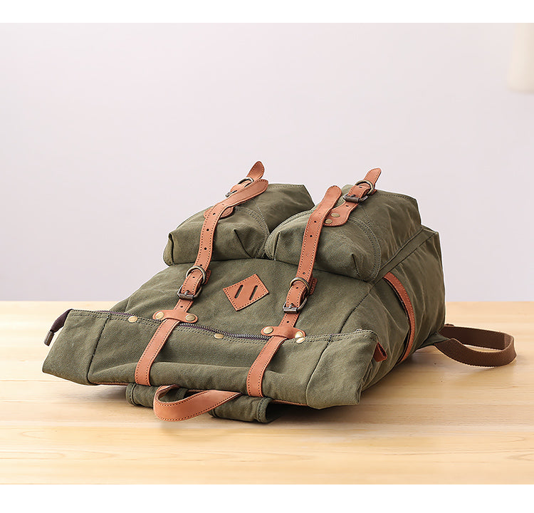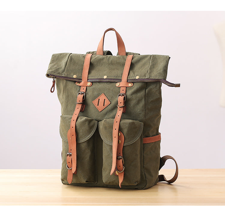 Style: Waxed Canvas Leather Mens Dark Gray Waterproof 15‘’ Large Backpack Travel Backpack College Backpack for Men