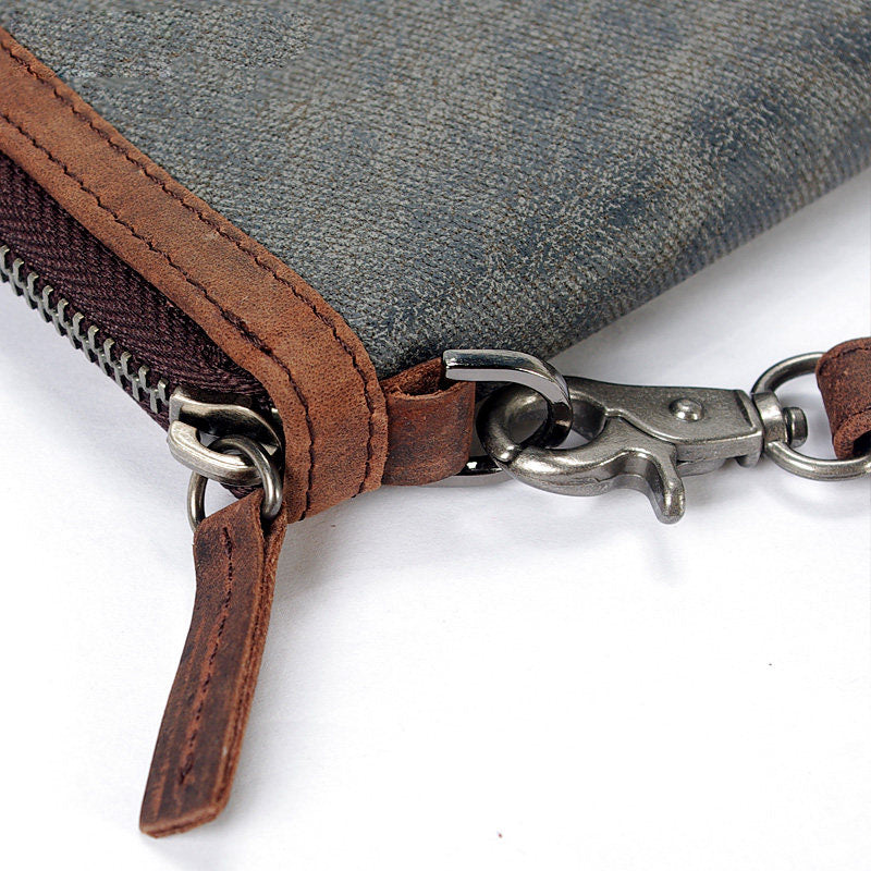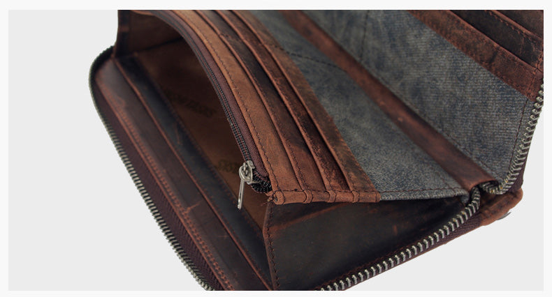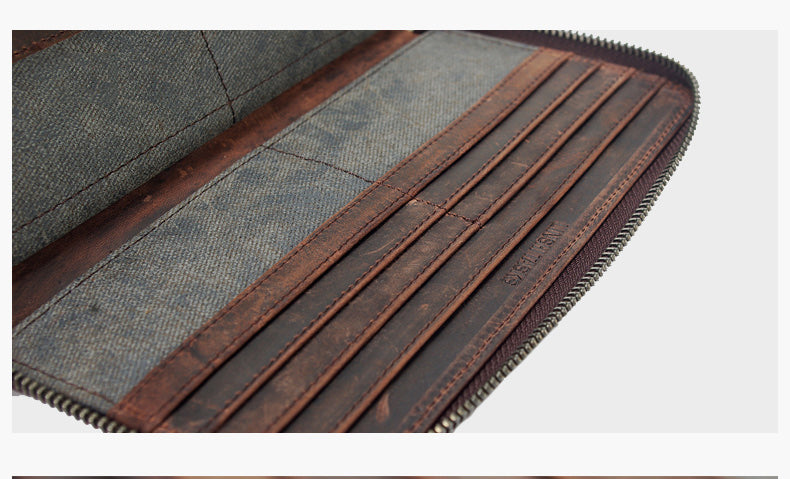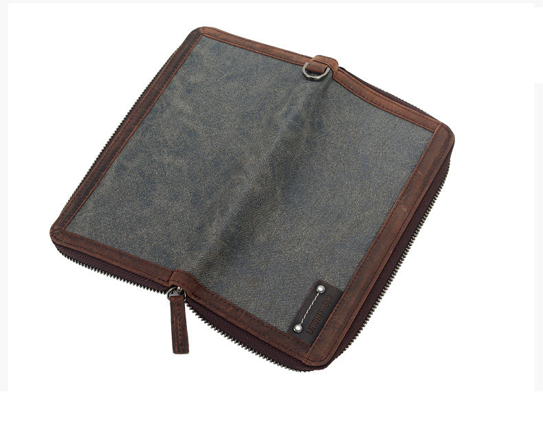 Style: Casual Black Canvas Leather Men's Long Wallet Bifold Card Wallets Coin Purse For Men