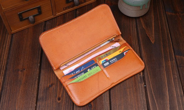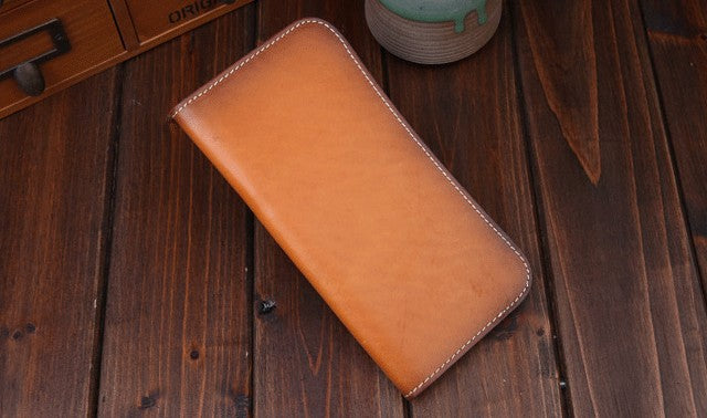 Handmade Leather Mens Clutch Wallet Cool Leather Wallet Long Phone Wallets for Men