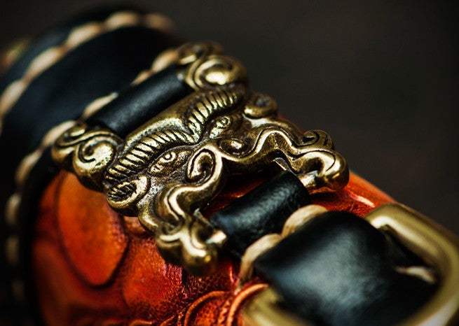Style: Handmade Leather Tooled Carp Mens Chain Biker Wallet Cool Leather Wallet Long Phone Wallets for Men