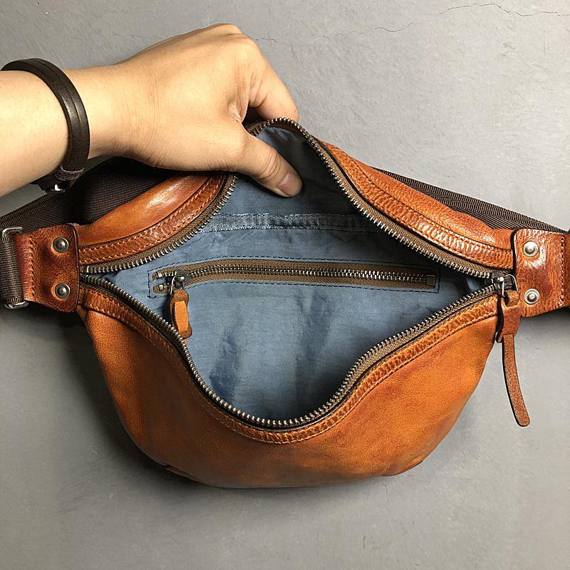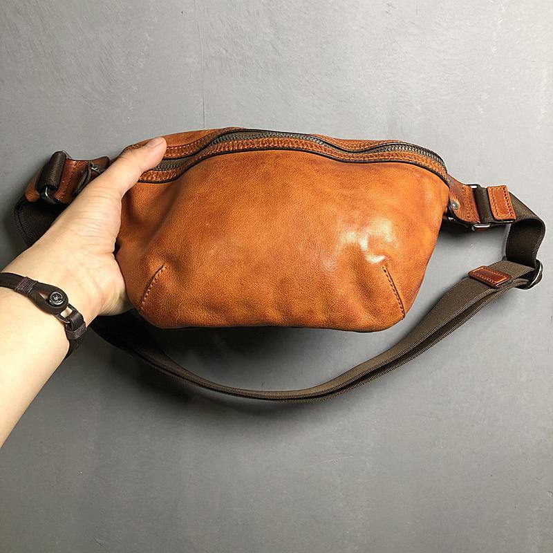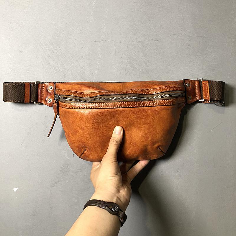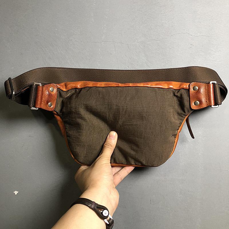 Style: Black Cool Leather Men 8 inches Fanny Pack Waist Bag Hip Pack Chest Bag Belt Bag Bumbag for Men