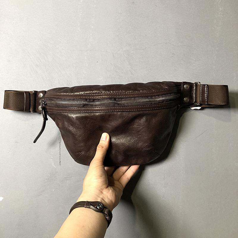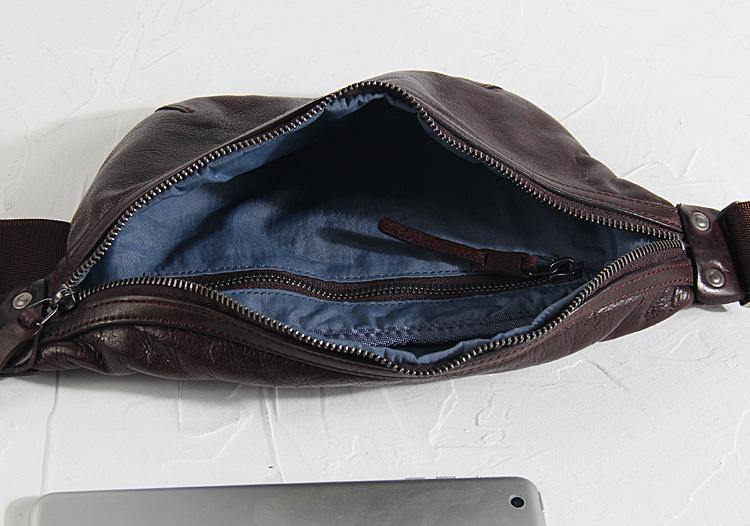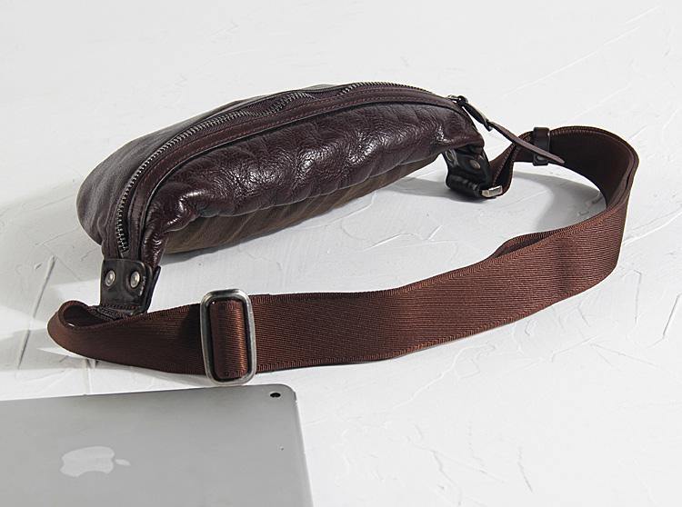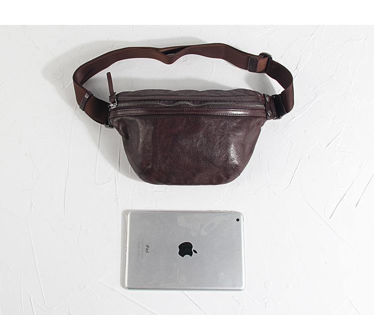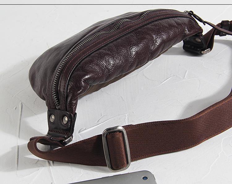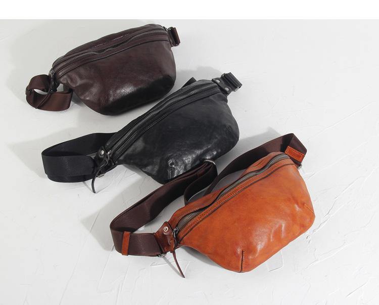 Design: Black Cool Leather Men 8 inches Fanny Pack Waist Bag Hip Pack Chest Bag Belt Bag Bumbag for Men
