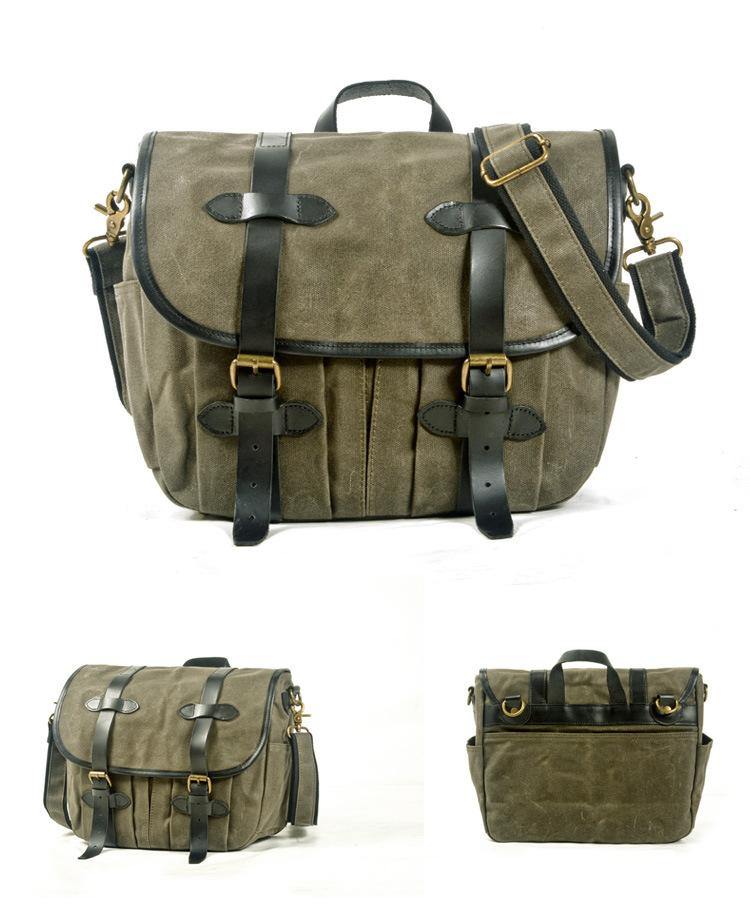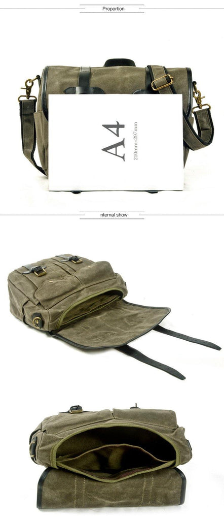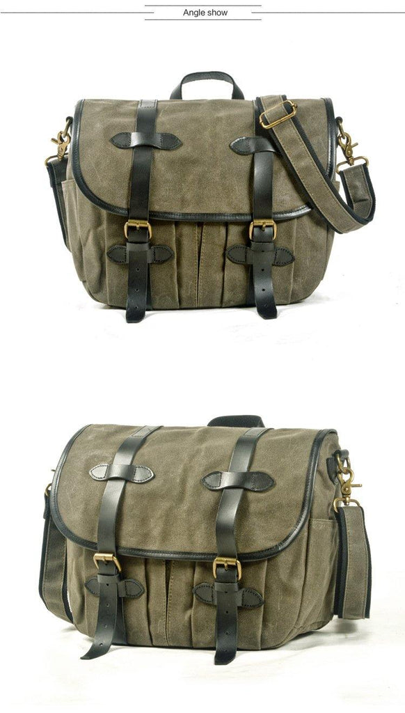 Style: Army Green Waxed Canvas Mens Cycling Messenger Bags Army Green Canvas Bike Side Bag For Men