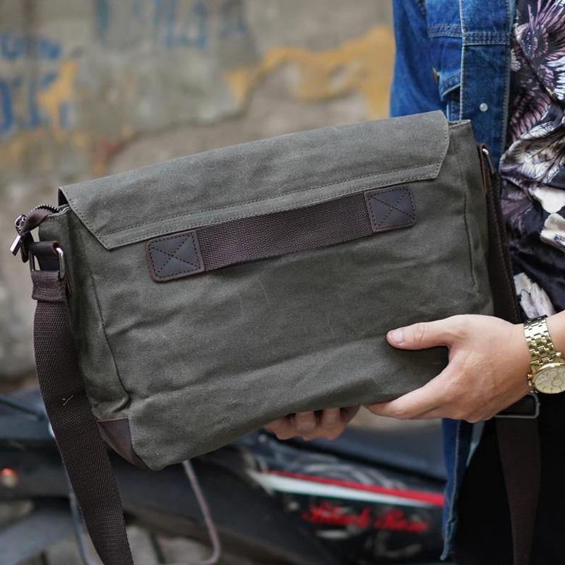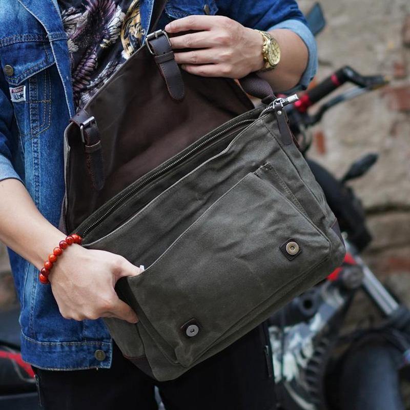 Style: Army Green Waxed Canvas Mens Cycling Messenger Bags Small Canvas Bike Side Bag For Men