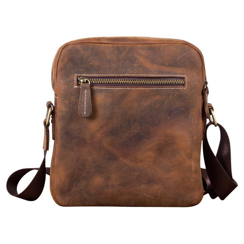 Design: Badass Brown Leather Men's Sling Bag Chest Bag One shoulder 10 inches Messenger Bag For Men