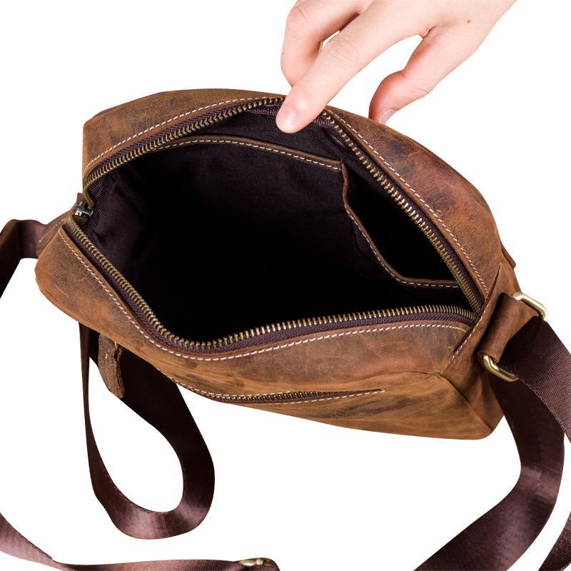 Style: Badass Brown Leather Men's Sling Bag Chest Bag One shoulder 10 inches Messenger Bag For Men