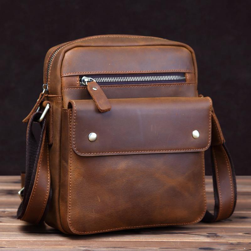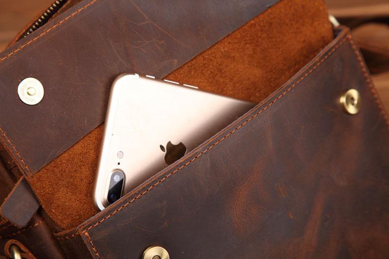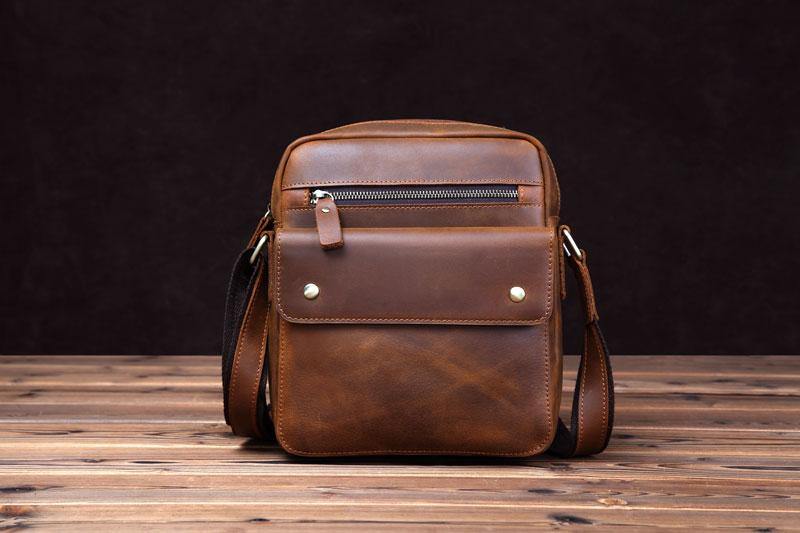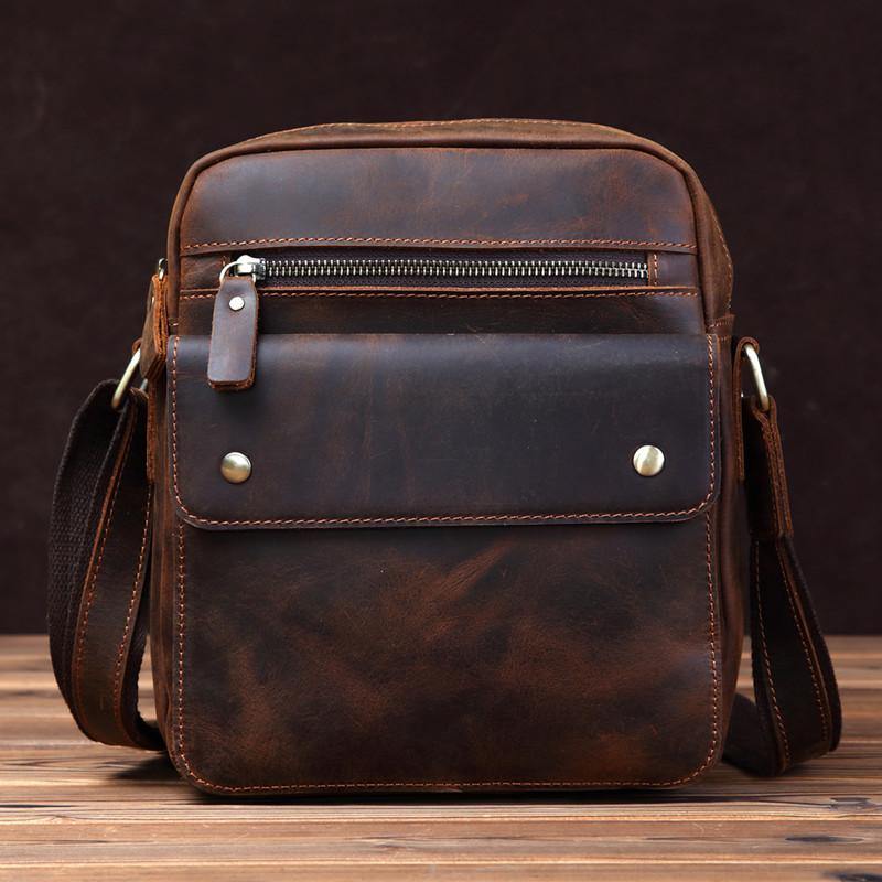 Design: BBadass Brown Leather Messenger Bag Men's 10 inches Casual Side Bag Mini Phone Bag Courier Bag For MenOverview: