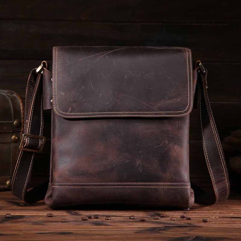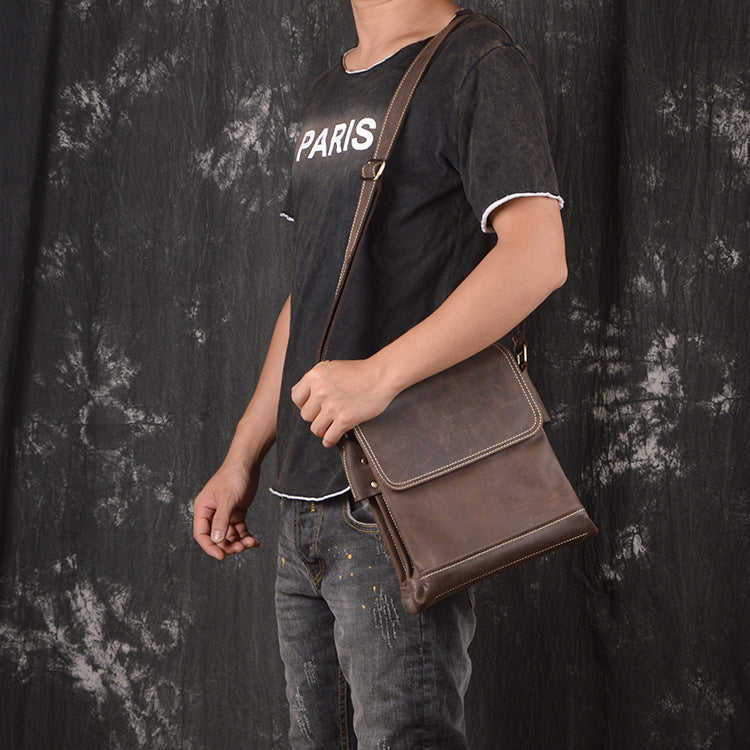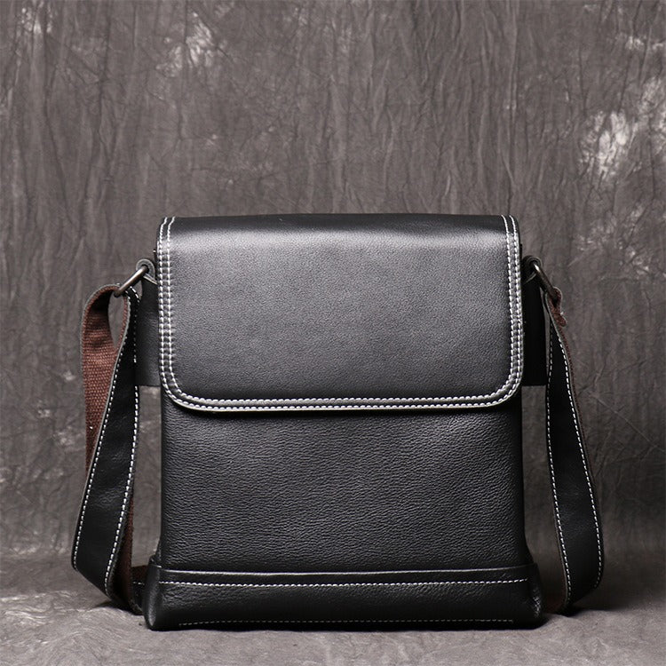 Black Vertical Messenger Bag Mens 10 inches Leather Side bag Vertical Courier Bag For Men