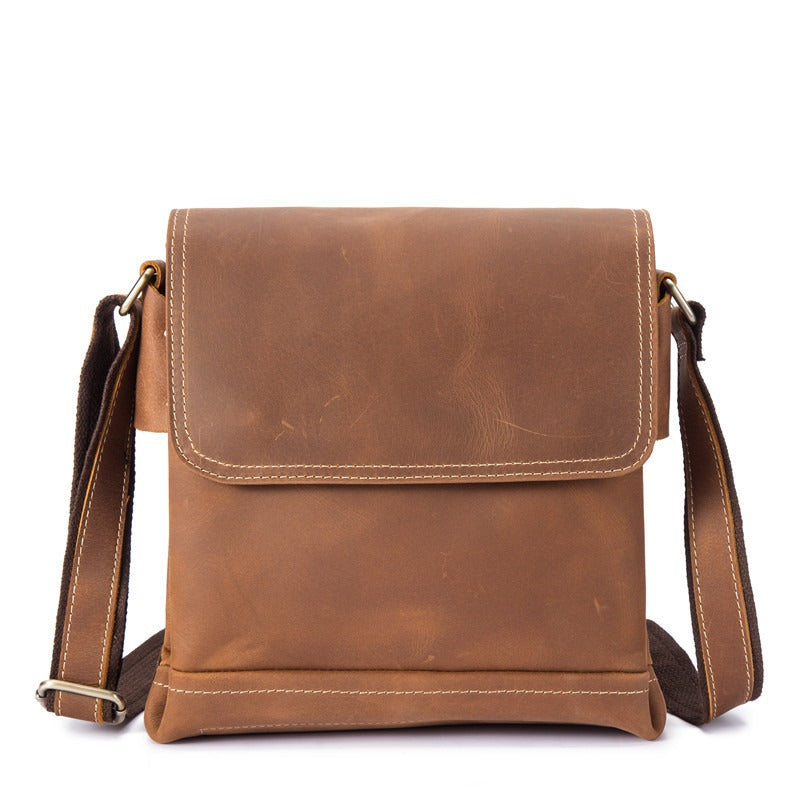Style: BADASS BROWN YELLOW LEATHER MEN'S 10 inches SLING BAG ONE SHOULDER BAG CHEST BAG MESSENGER BAG FOR MEN