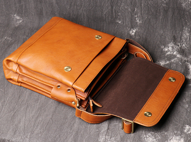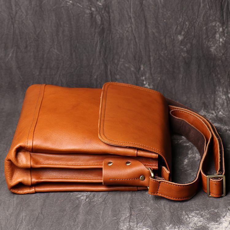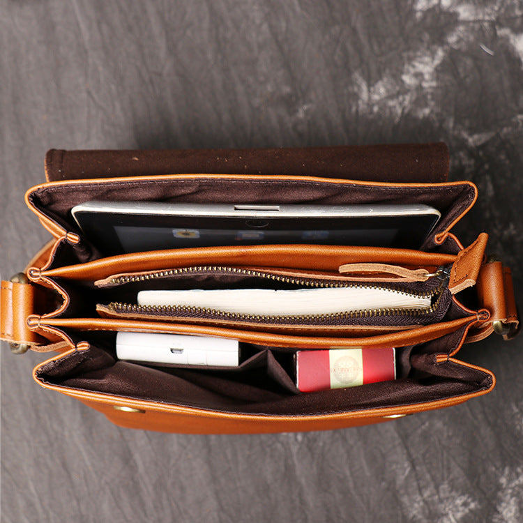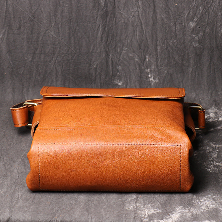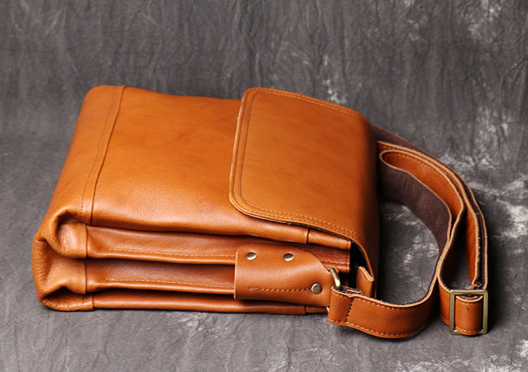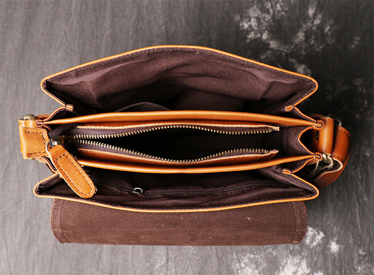 Design: BADASS BROWN YELLOW LEATHER MEN'S 10 inches SLING BAG ONE SHOULDER BAG CHEST BAG MESSENGER BAG FOR MEN