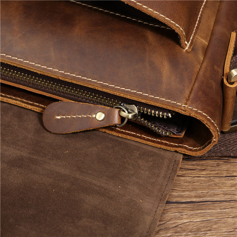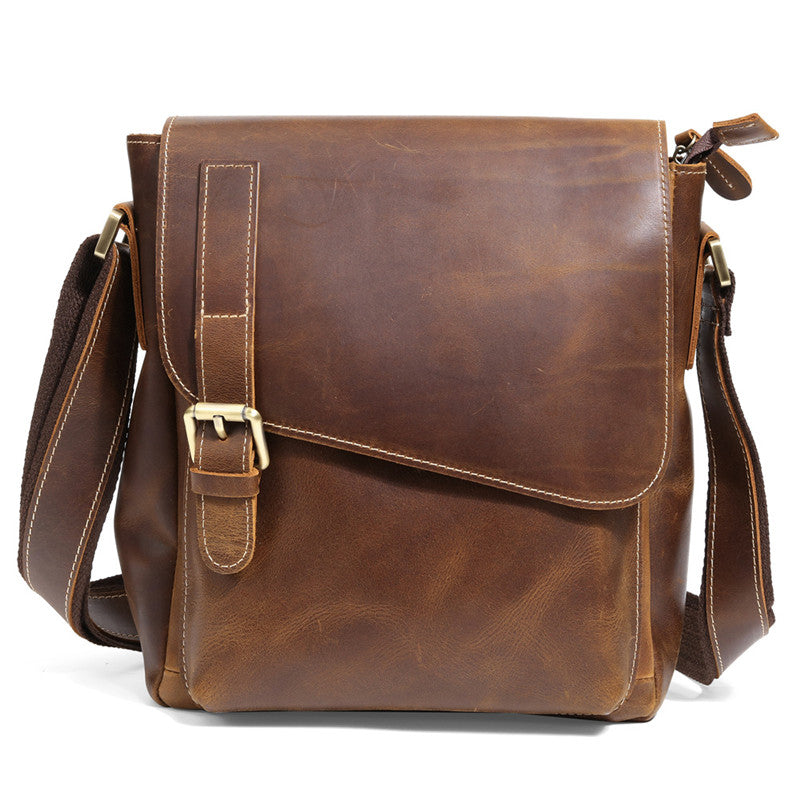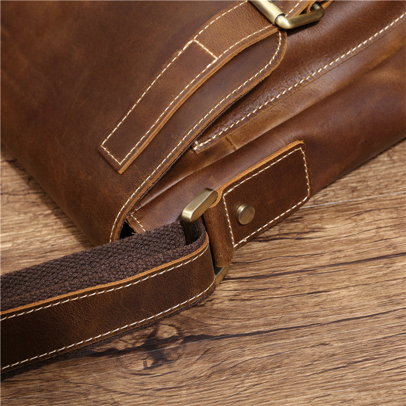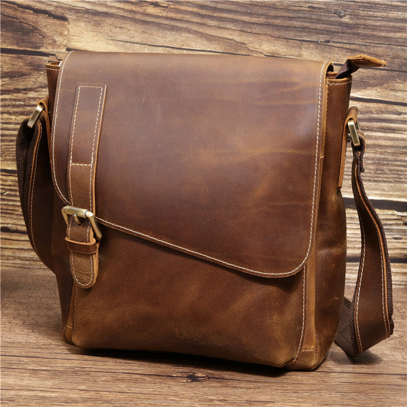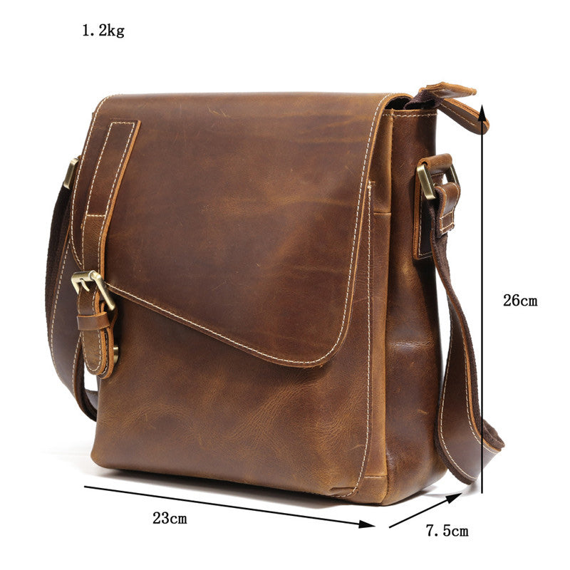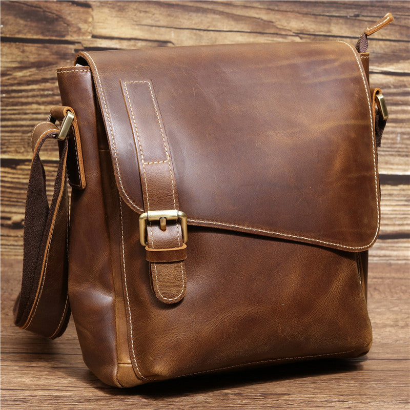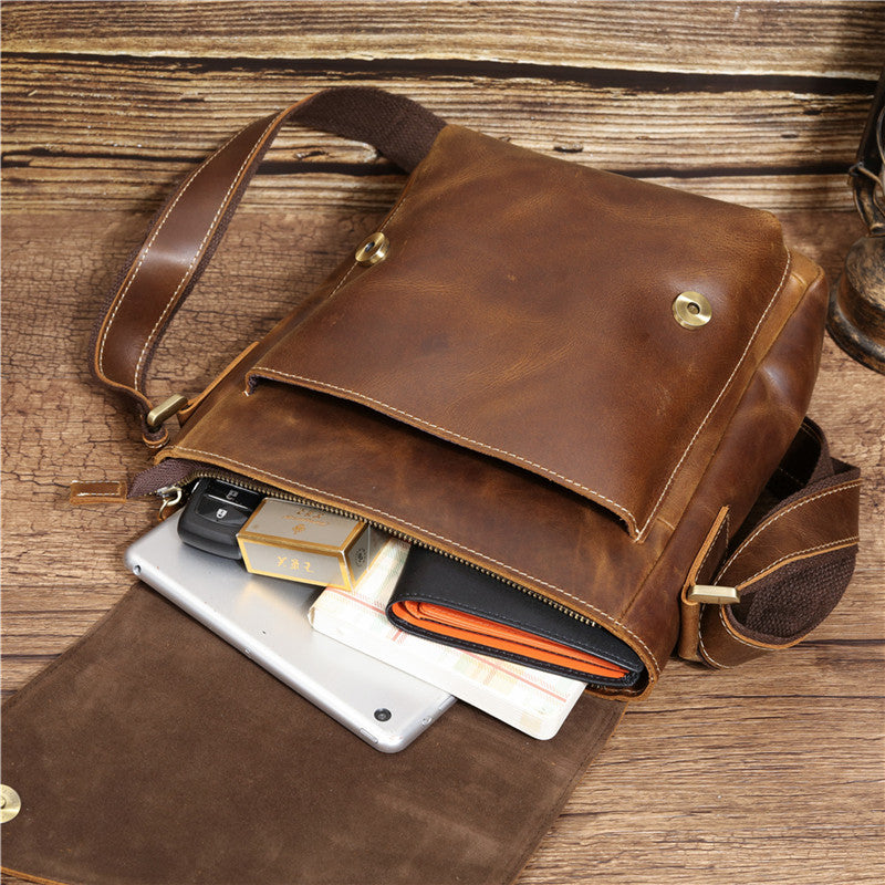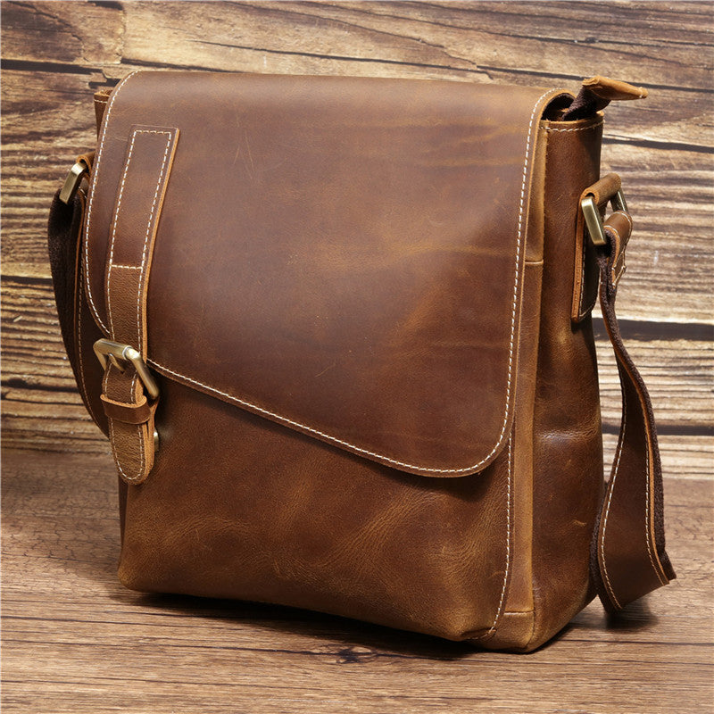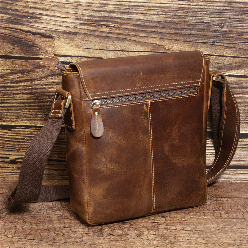 Design: Best Brown Leather Men's Vertical Side Bag 10 inches Vertical iPad Messenger Bag For MenOverview: