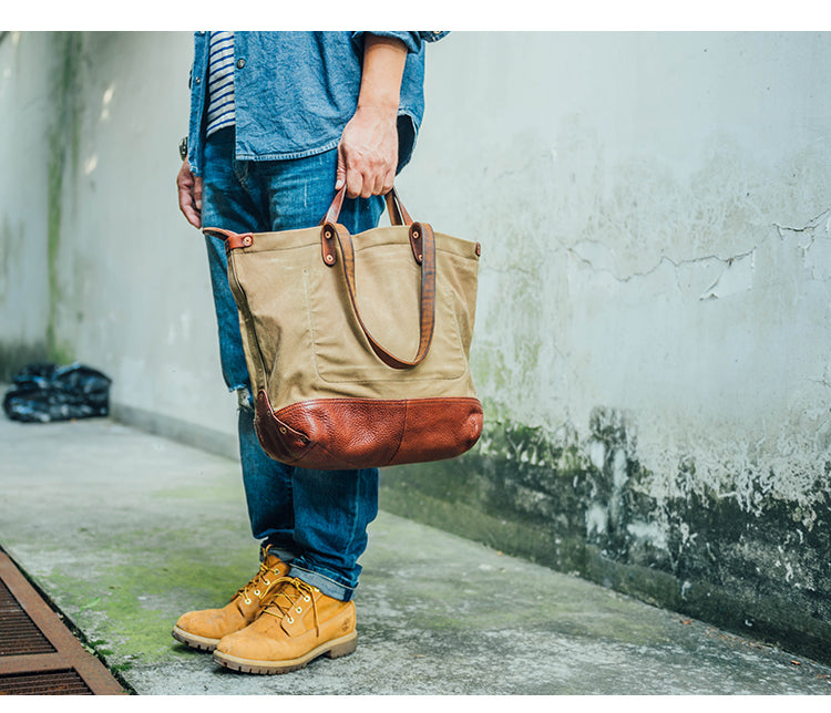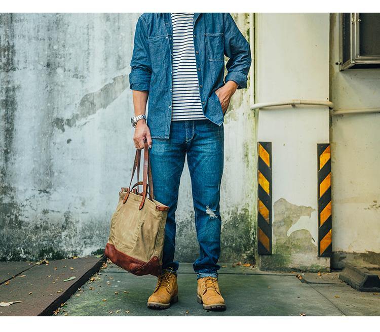 Design: Handmade Canvas Leather Cool Mens Tote Bag Canvas Handbag Canvas Tote Canvas Messenger Bags for Men Women