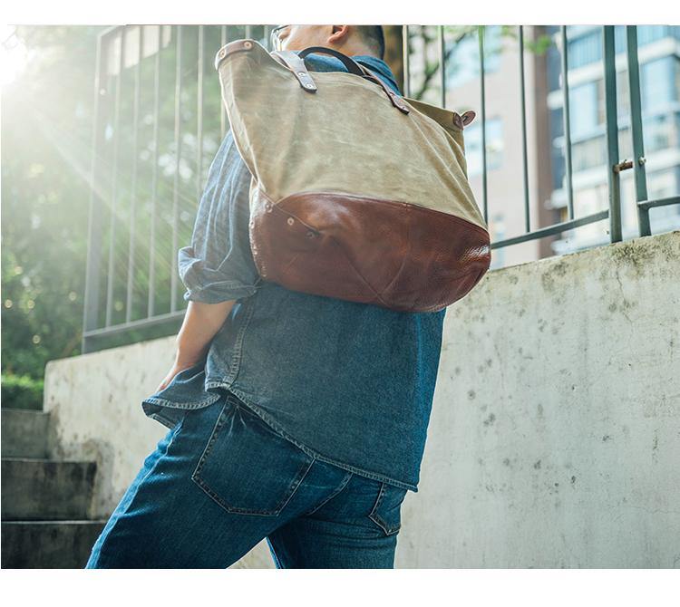 Style: Handmade Canvas Leather Cool Mens Tote Bag Canvas Handbag Canvas Tote Canvas Messenger Bags for Men Women