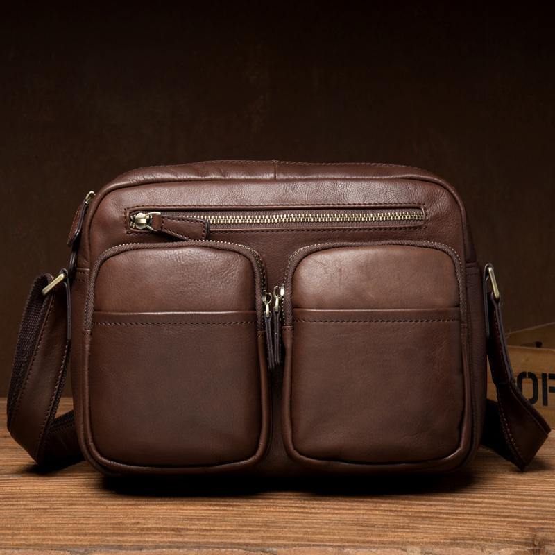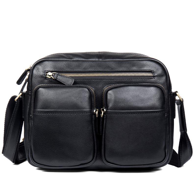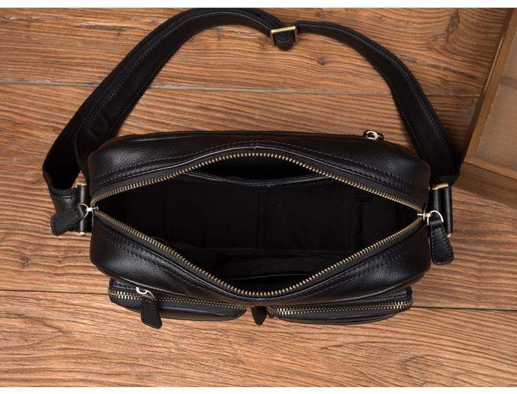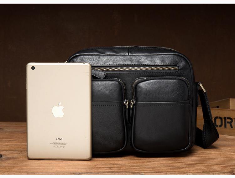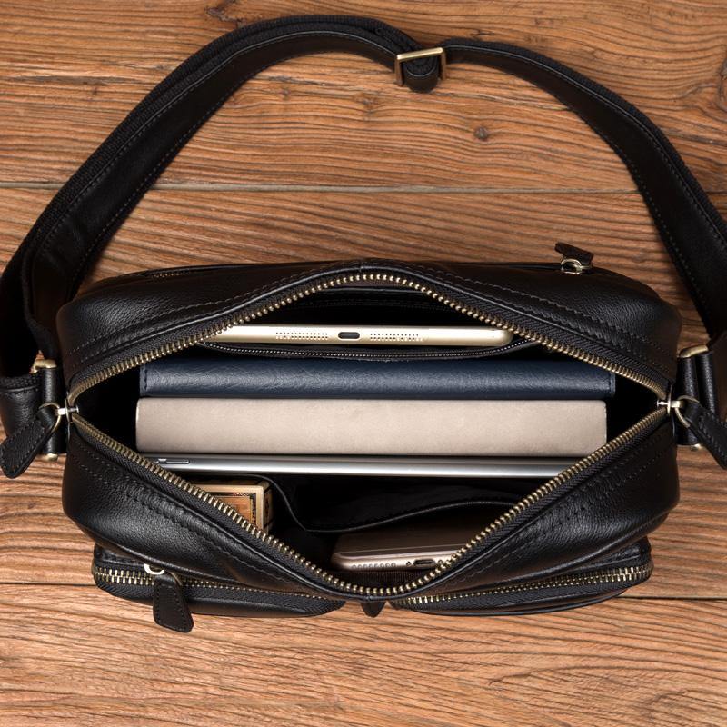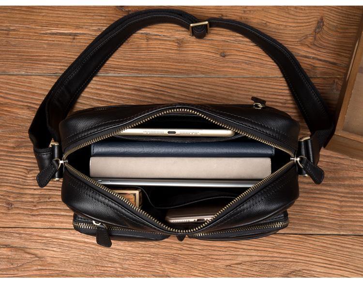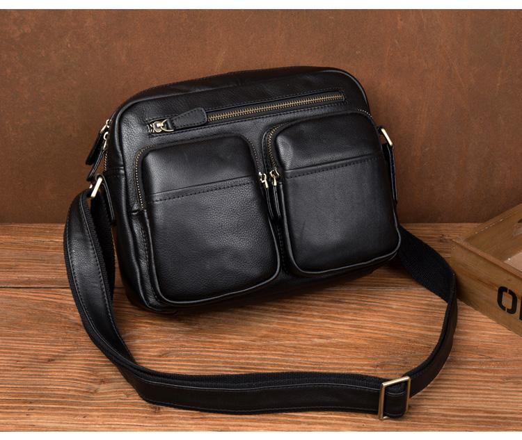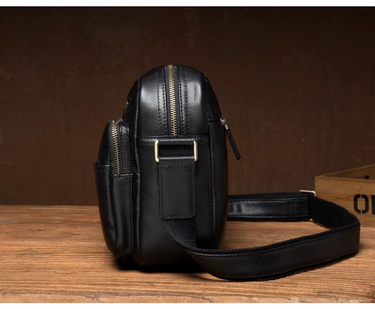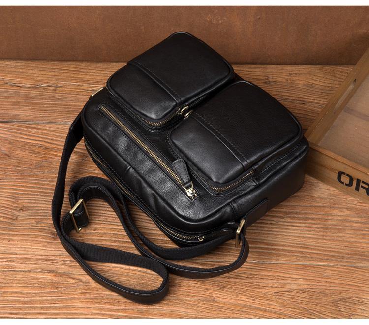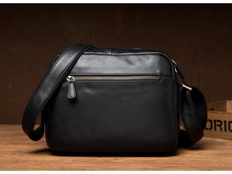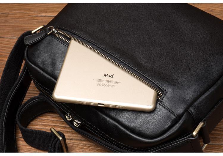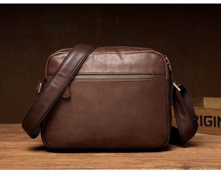Design: Black Brown Leather 10 inches Mens Small Messenger Bags Shoulder Bag for Men