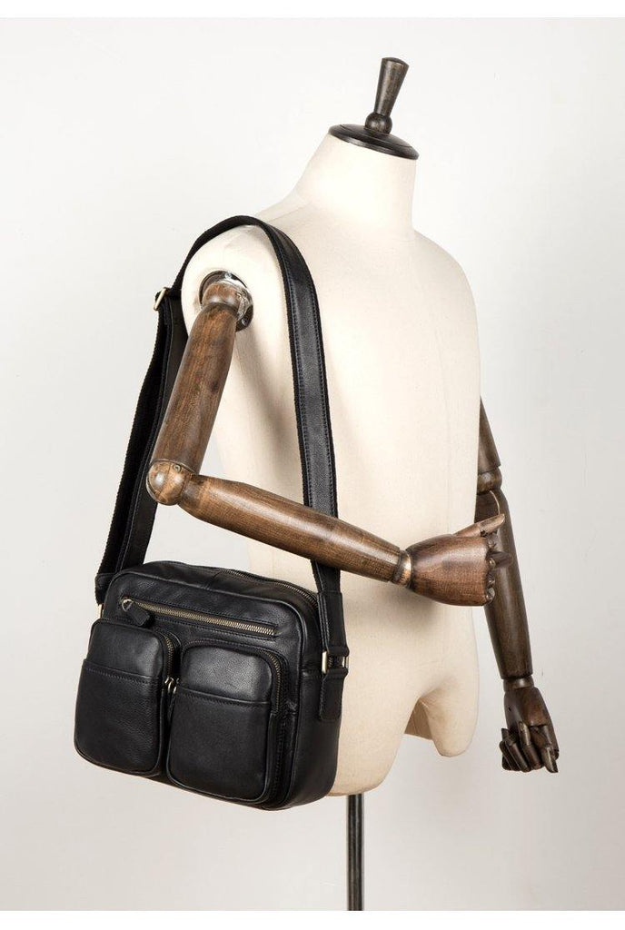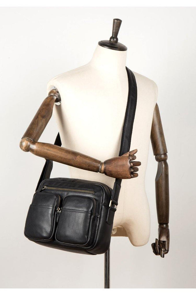 Style: Black Brown Leather 10 inches Mens Small Messenger Bags Shoulder Bag for Men