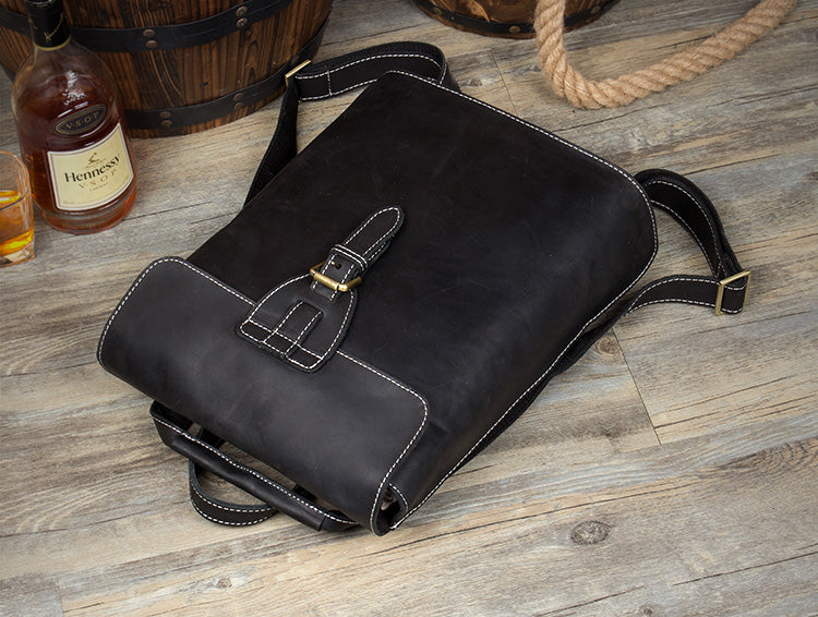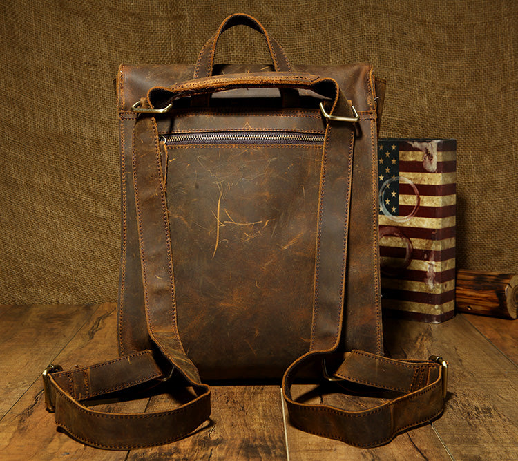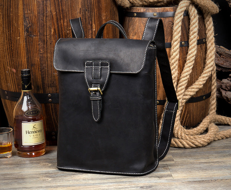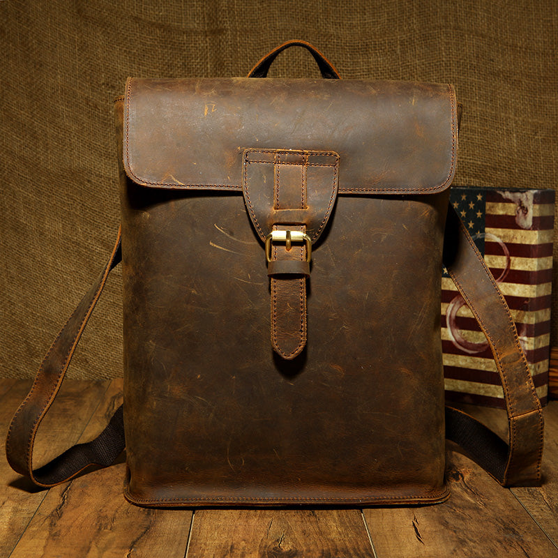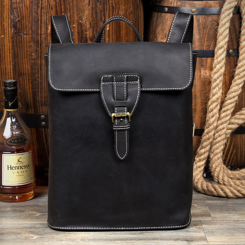 Design: Black Fashion Mens Leather 14-inch Computer Backpack Brown Satchel Backpacks School Backpacks for men