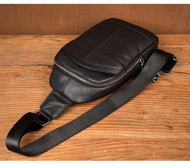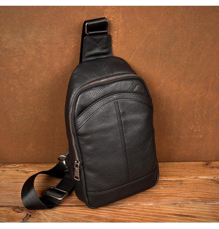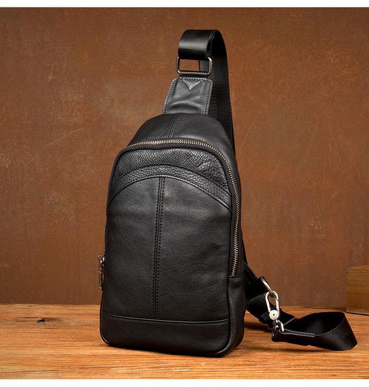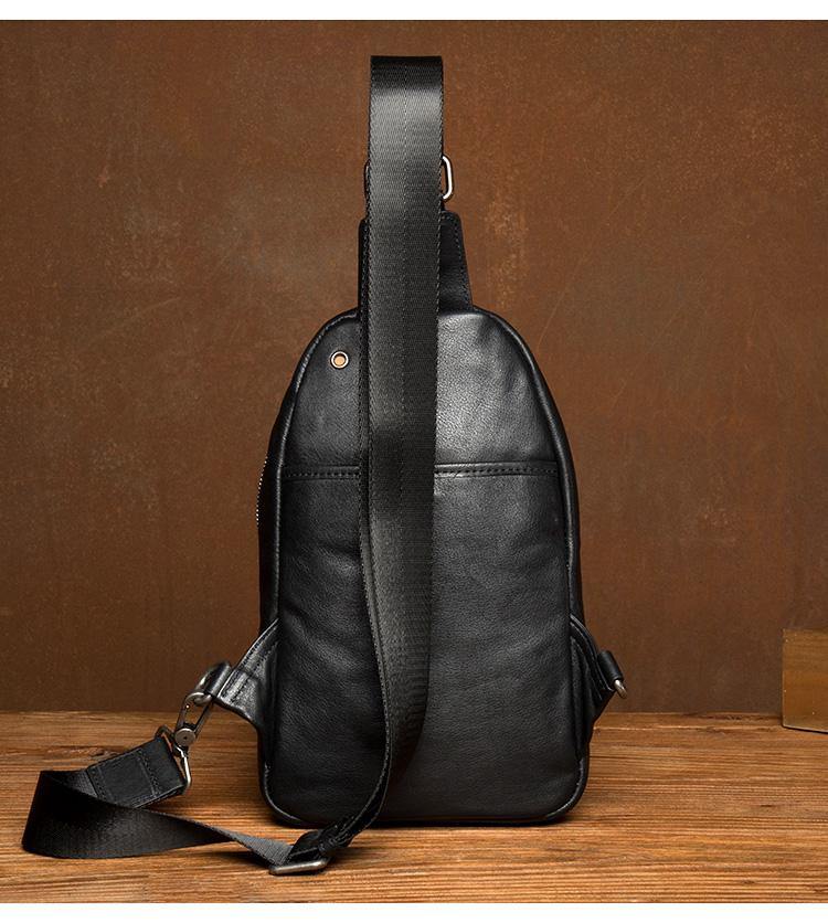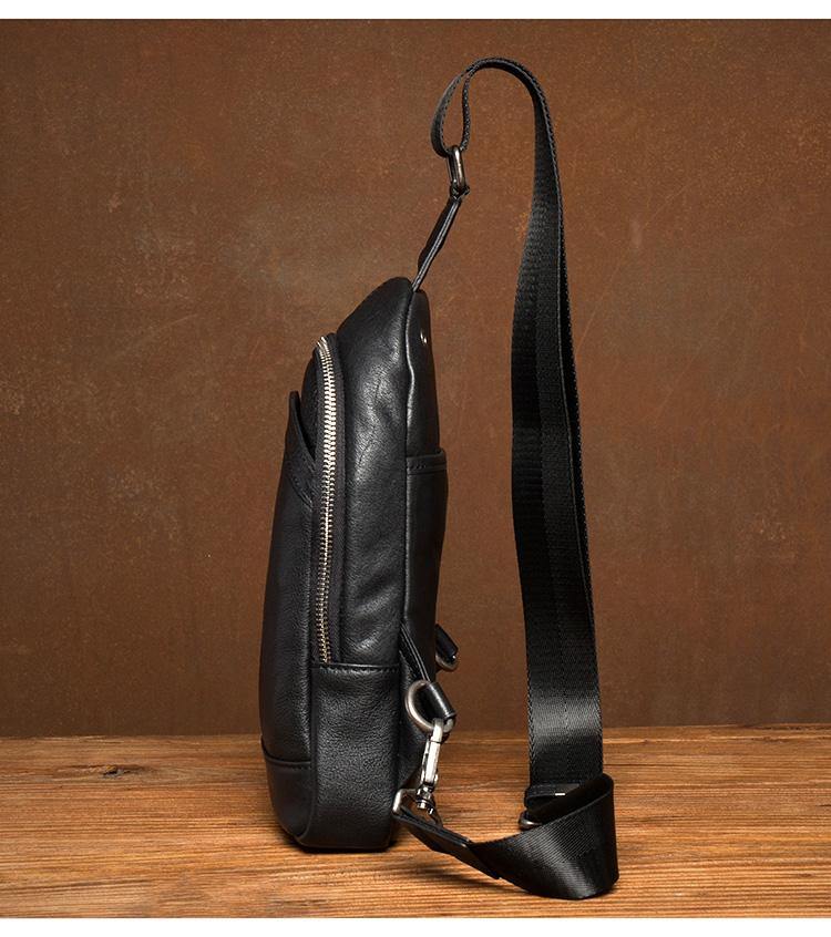 Design: Black Leather Mens 8 inches Cool Sling Bag Crossbody Bag Chest Bag for men