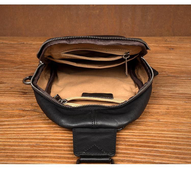 Style: Black Leather Mens 8 inches Cool Sling Bag Crossbody Bag Chest Bag for men