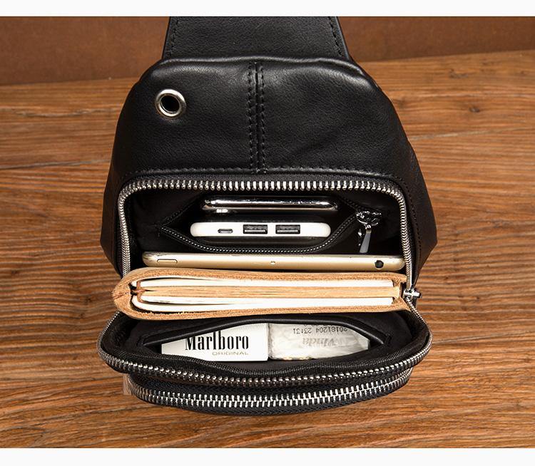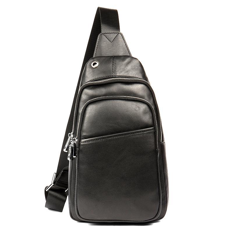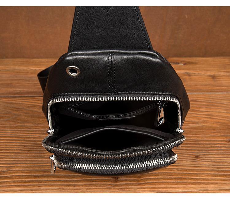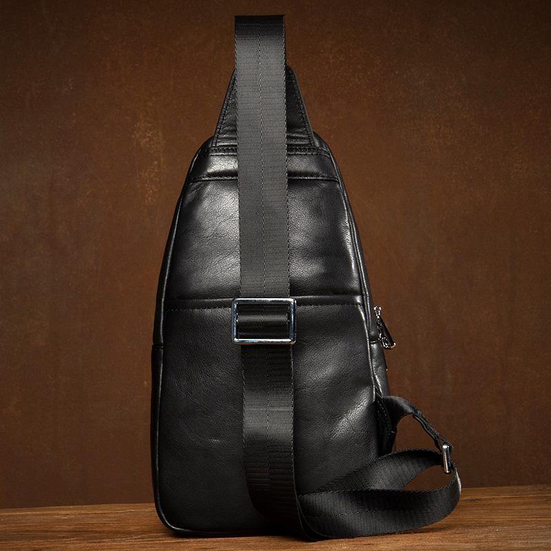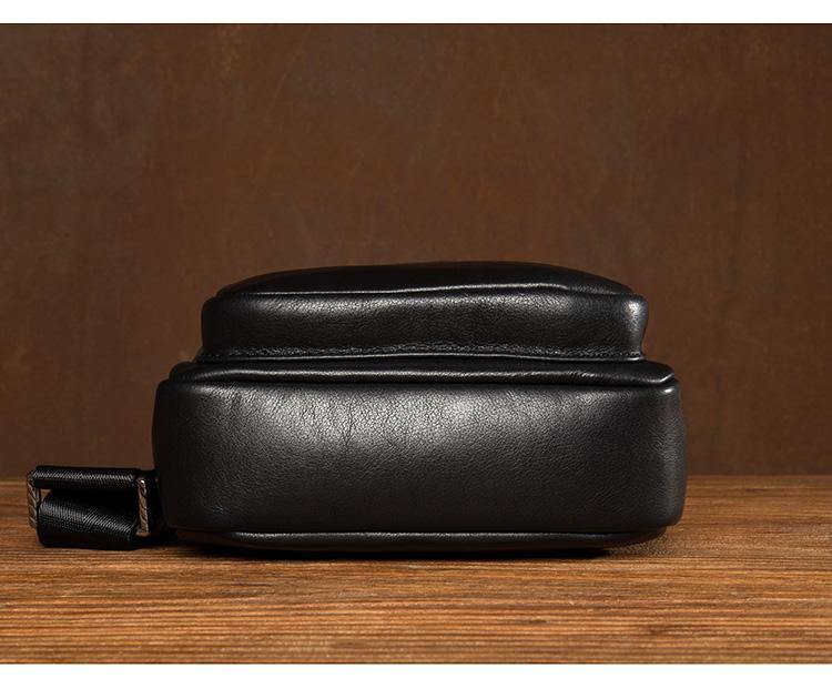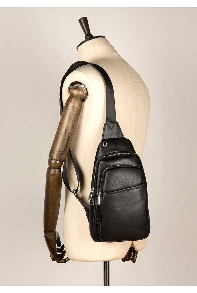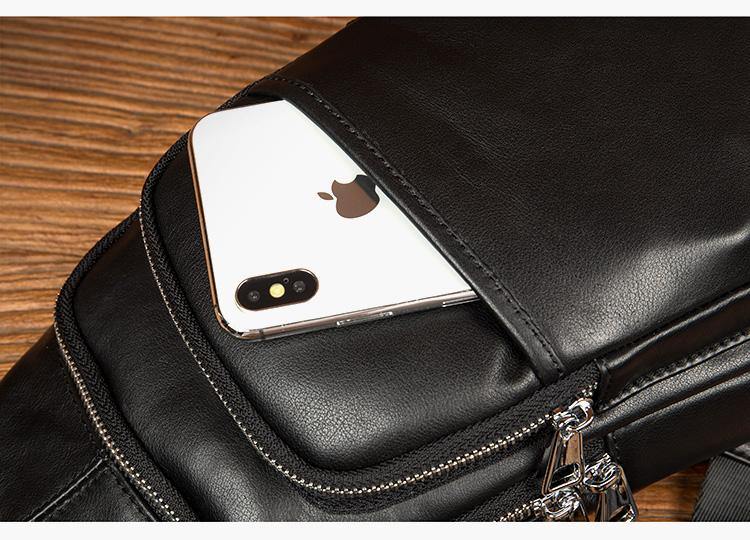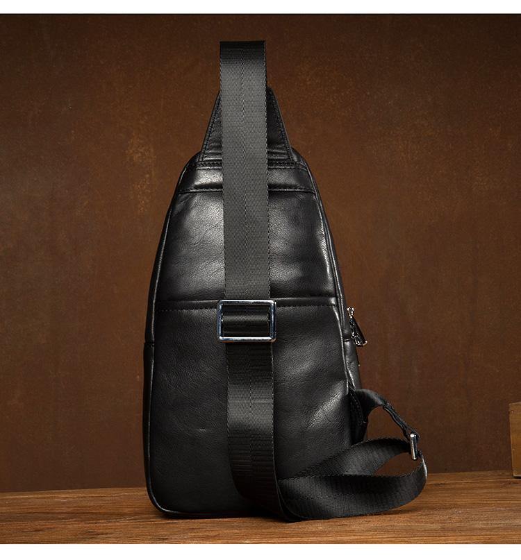 Design: Black Leather Mens 8 inches Cool Sling Bag Crossbody Bag Chest Bags for men