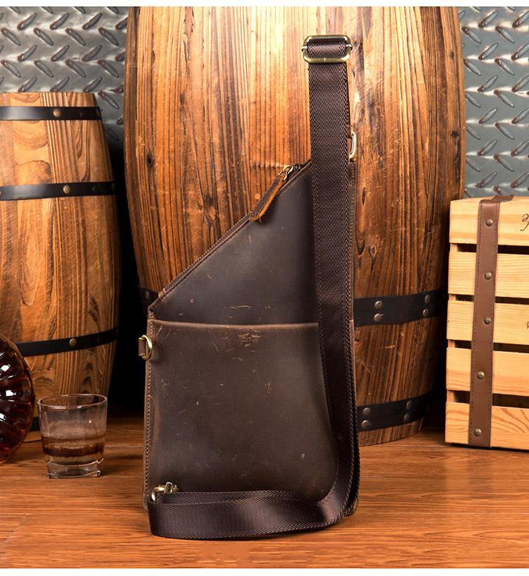 Design: Dark Brown Leather Mens 8 inches Cool Sling Bags Crossbody Bag Chest Bag for men