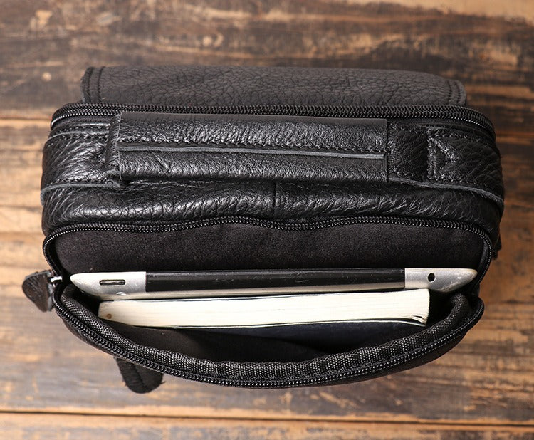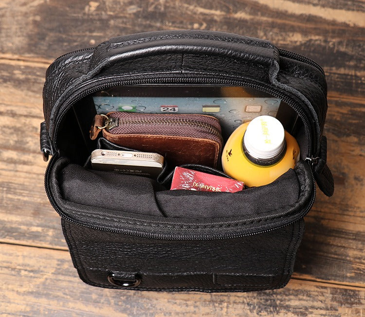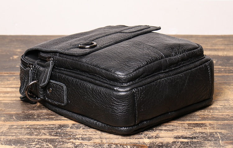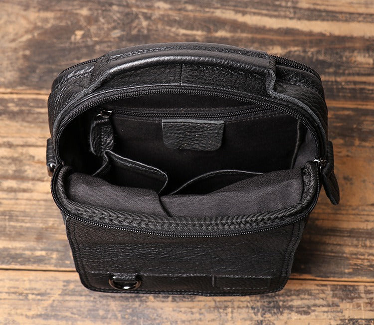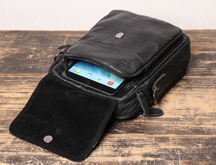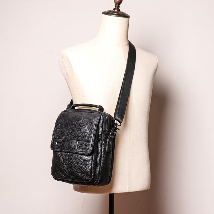Design: Black LEATHER MEN'S Small Side bag Vertical iPad Bag MESSENGER BAG Shoulder Bag FOR MENOverview: