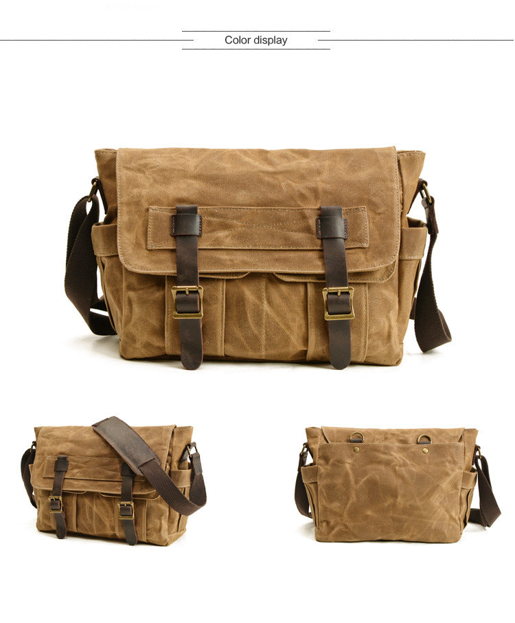 Style: Black Waxed Canvas SLR Camera Messenger Bag Mens Cycling Black Camera Messenger Bag For Men