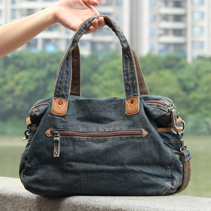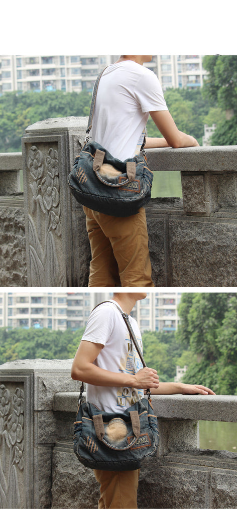 Style: Blue Denim Mens Casual Large Messenger Bags Jean Clutch Bags Courier Bag For Men