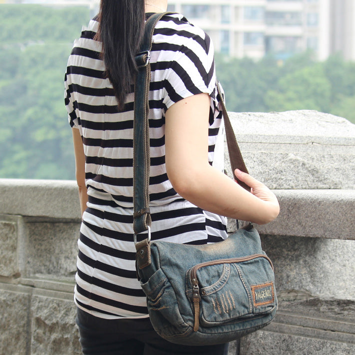 Style: Blue Denim Mens Womens Side Bag Handbag Blue Jean Messenger Bags For Women