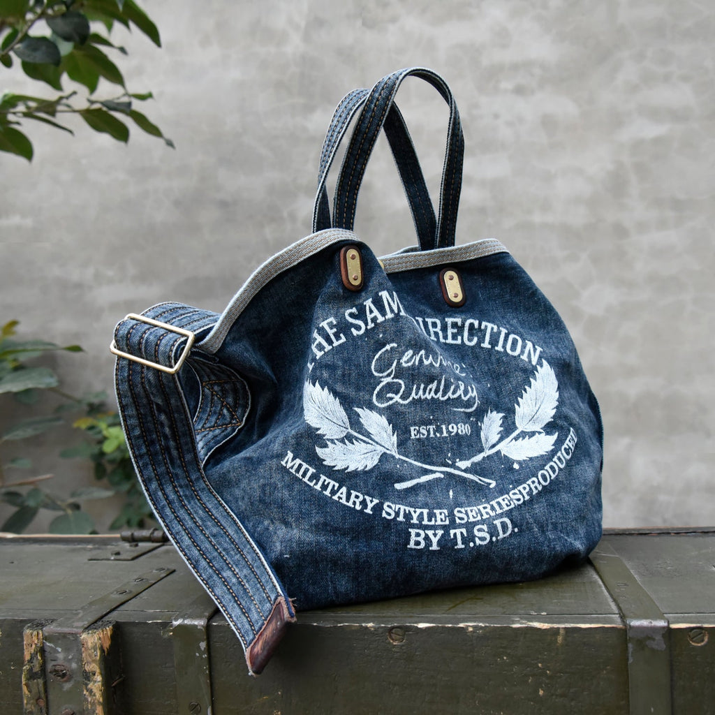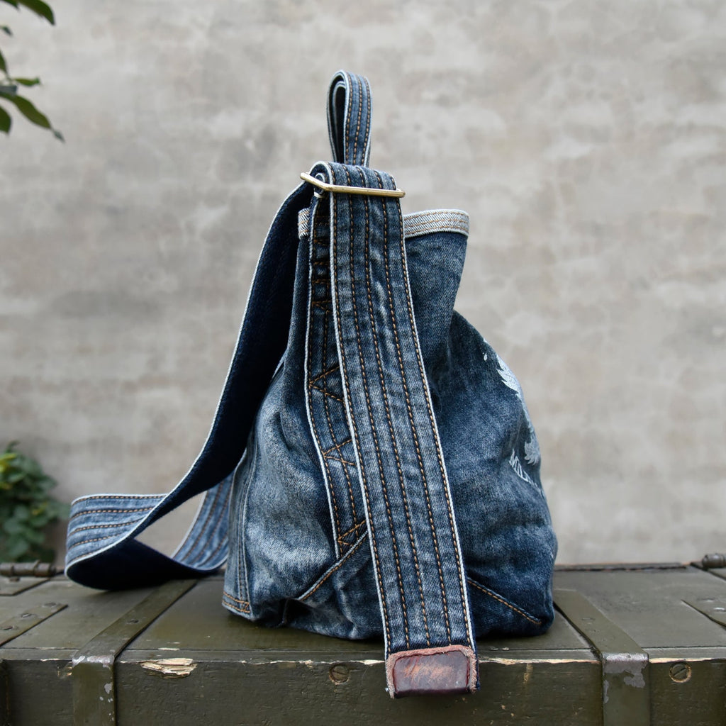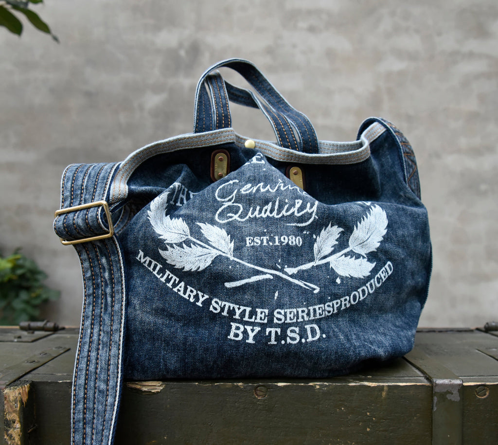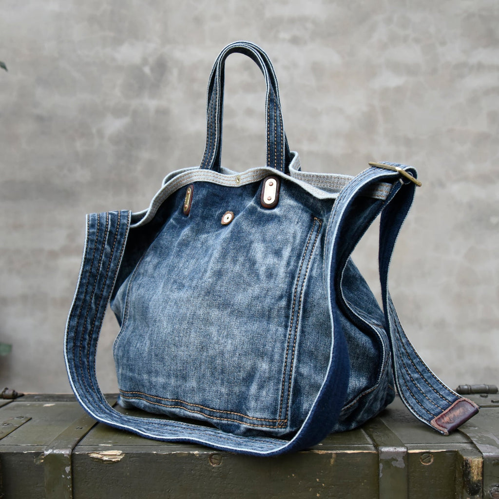 Style: Blue Denim Tote Handbag Denim Tote Bag Blue Denim Tote Shoulder Bag Jean Tote Bag