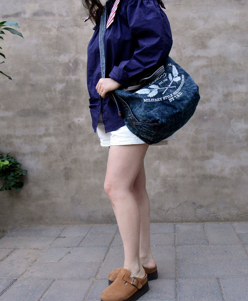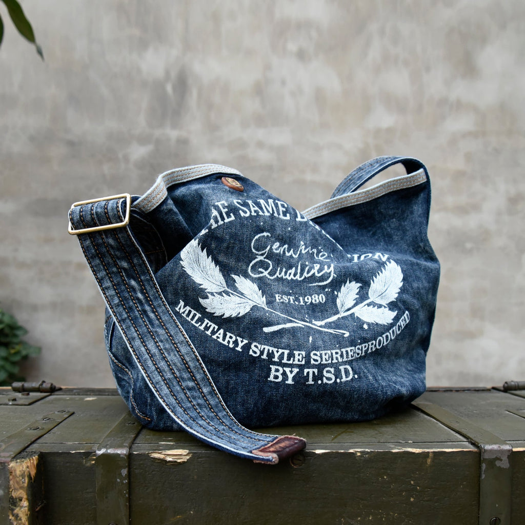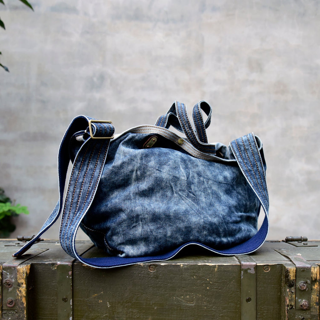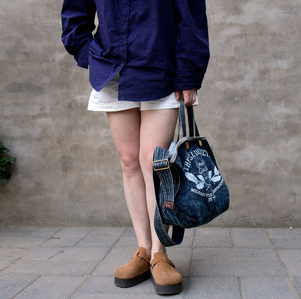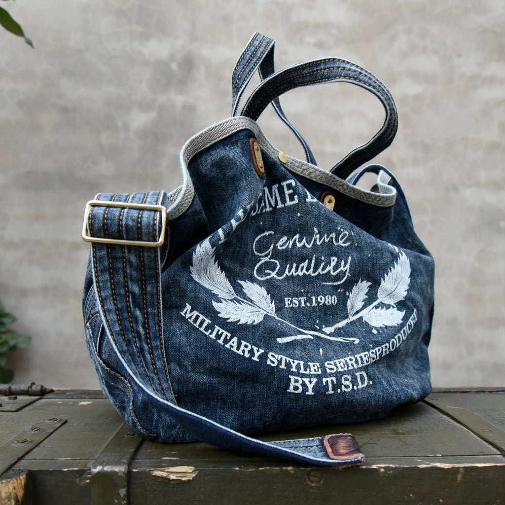 Style: Blue Denim Tote Handbag Denim Tote Bag Blue Denim Tote Shoulder Bag Jean Tote Bag