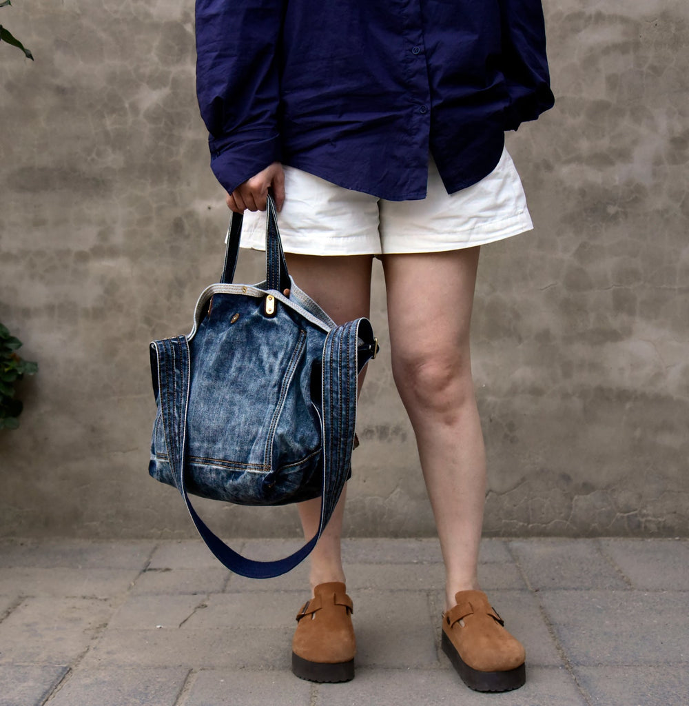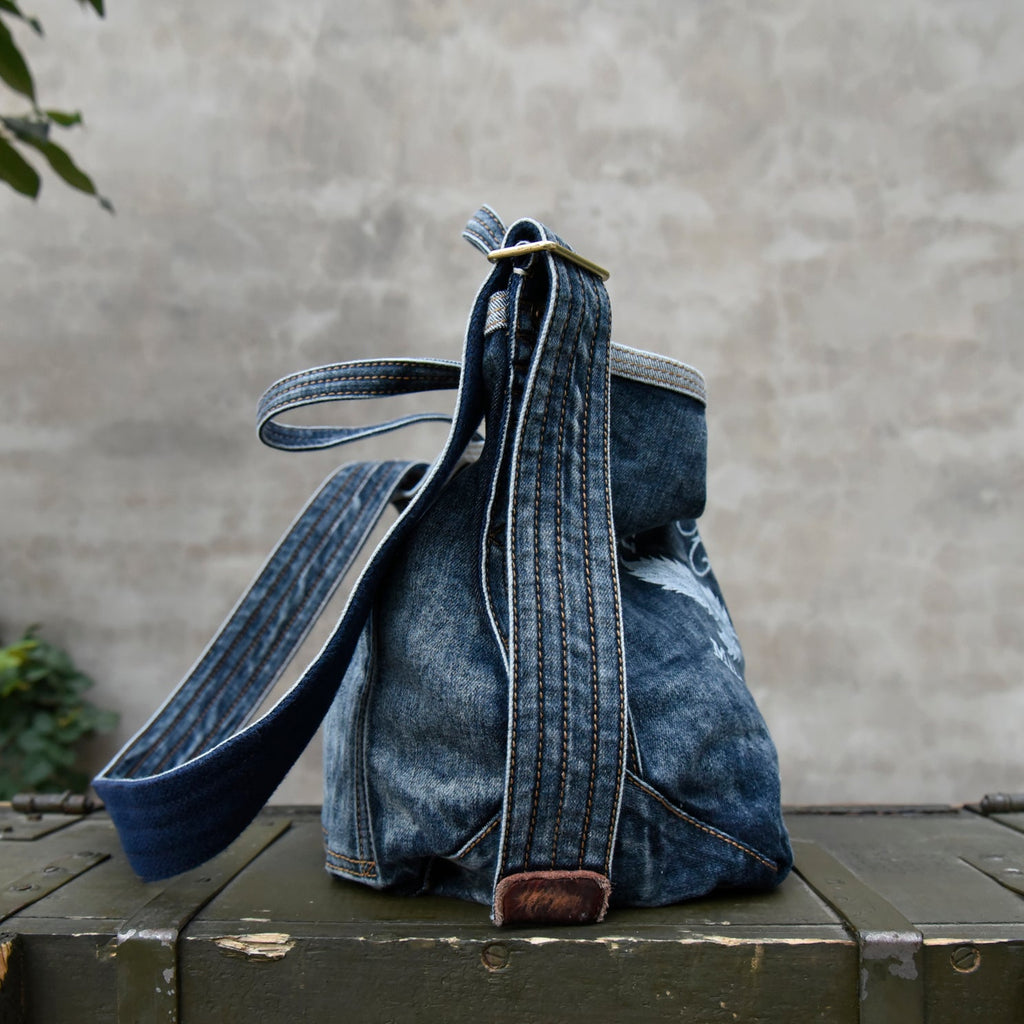 Design: Blue Denim Tote Handbag Denim Tote Bag Blue Denim Tote Shoulder Bag Jean Tote Bag