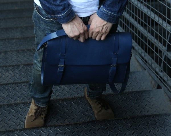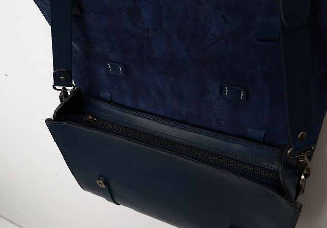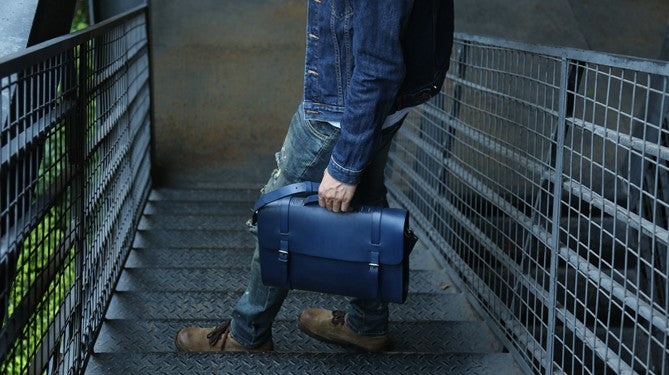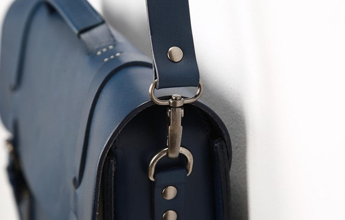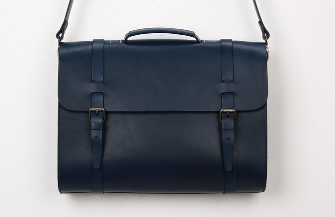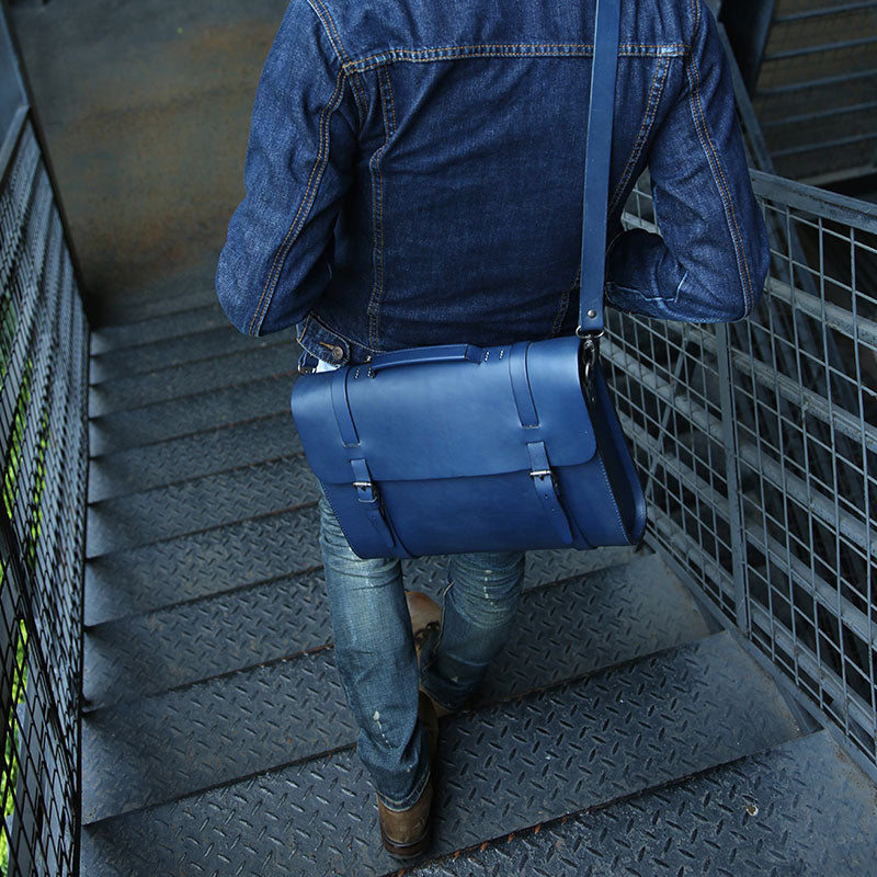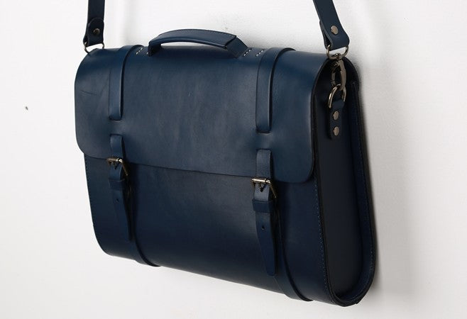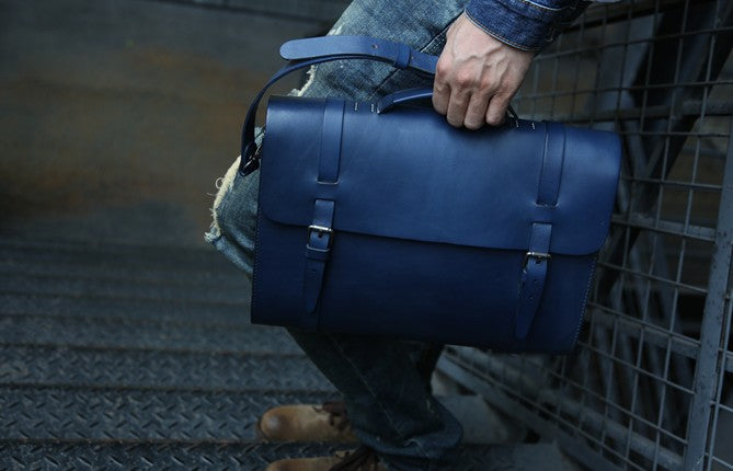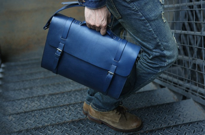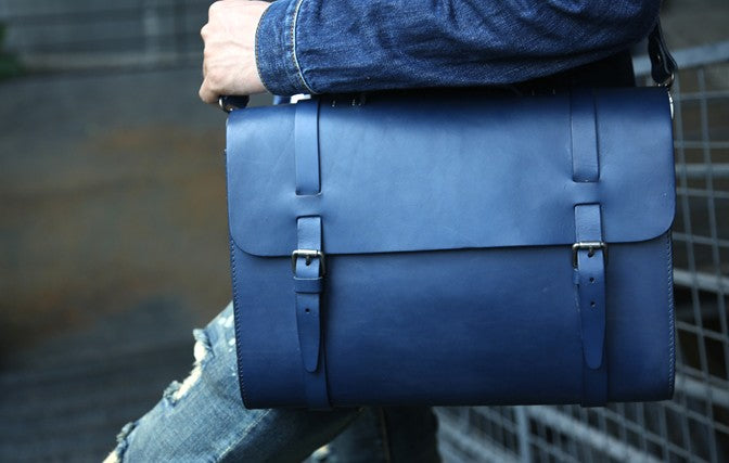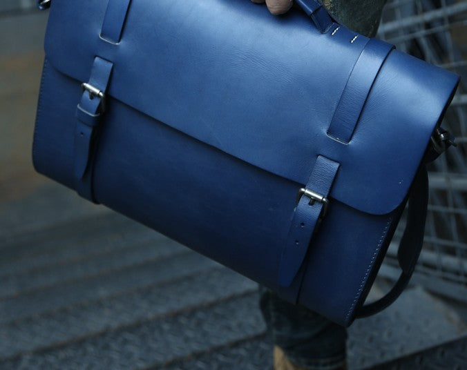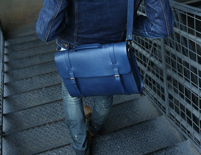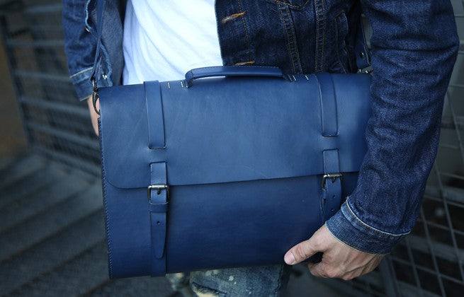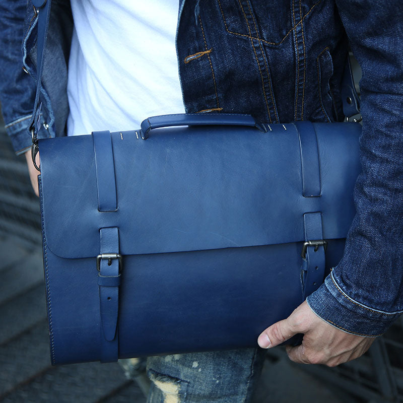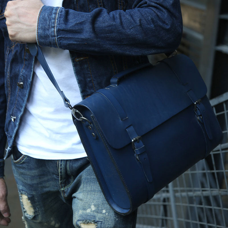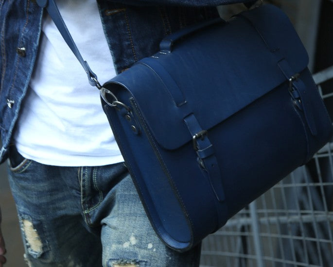 Design: Blue Leather Mens Briefcase Messenger Bag Handbag Shoulder Bag for men