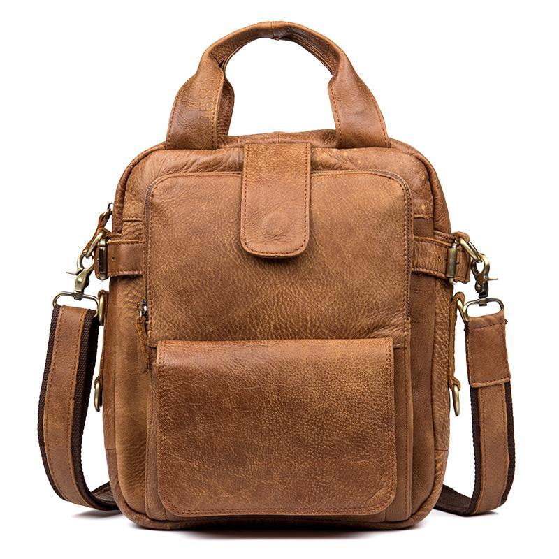 Design: Brown Cool Leather 12 inches Shoulder Bags Messenger Bags Crossbody Bags for Men