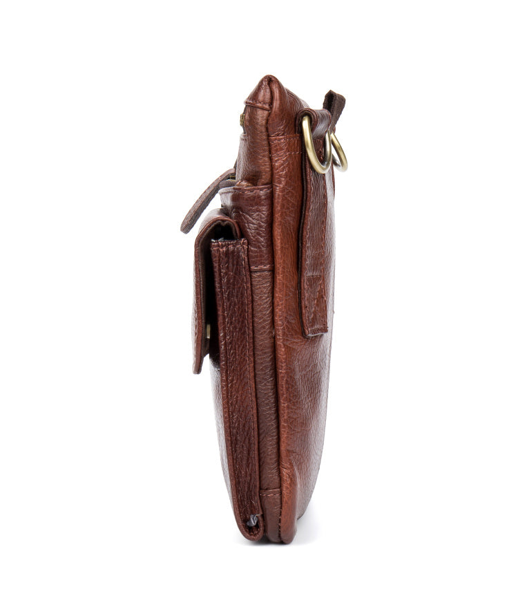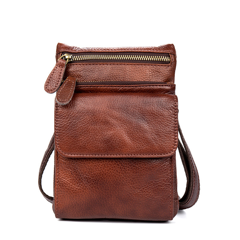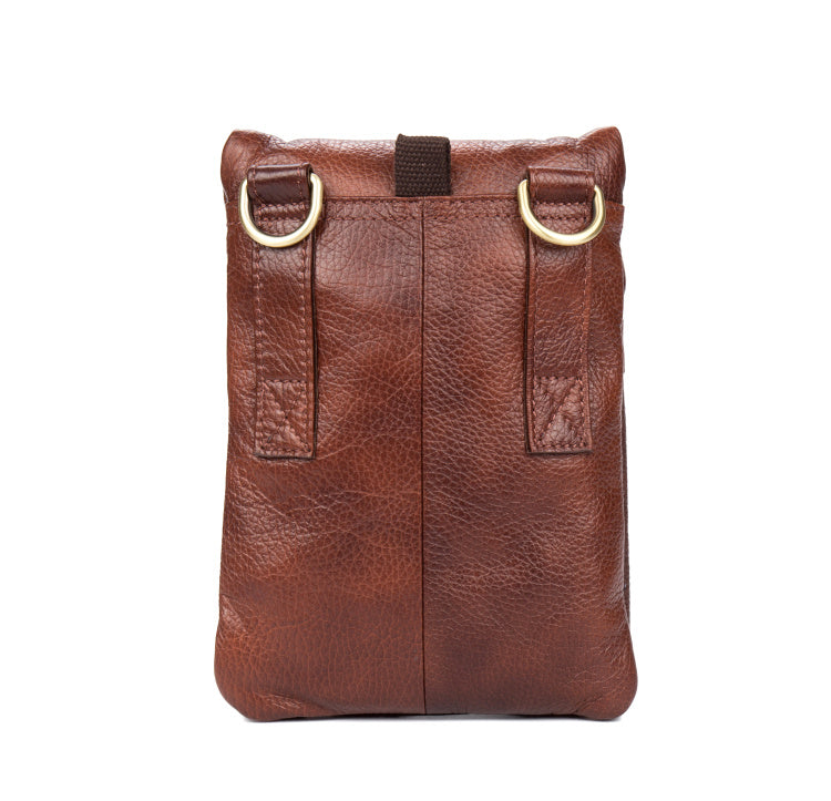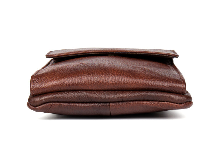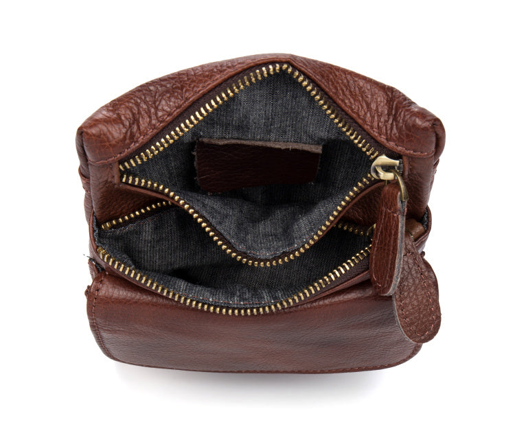 Brown Cool Leather Mens Belt Pouch Bag Mini Messenger Bag Side Bag Waist Bag for Men