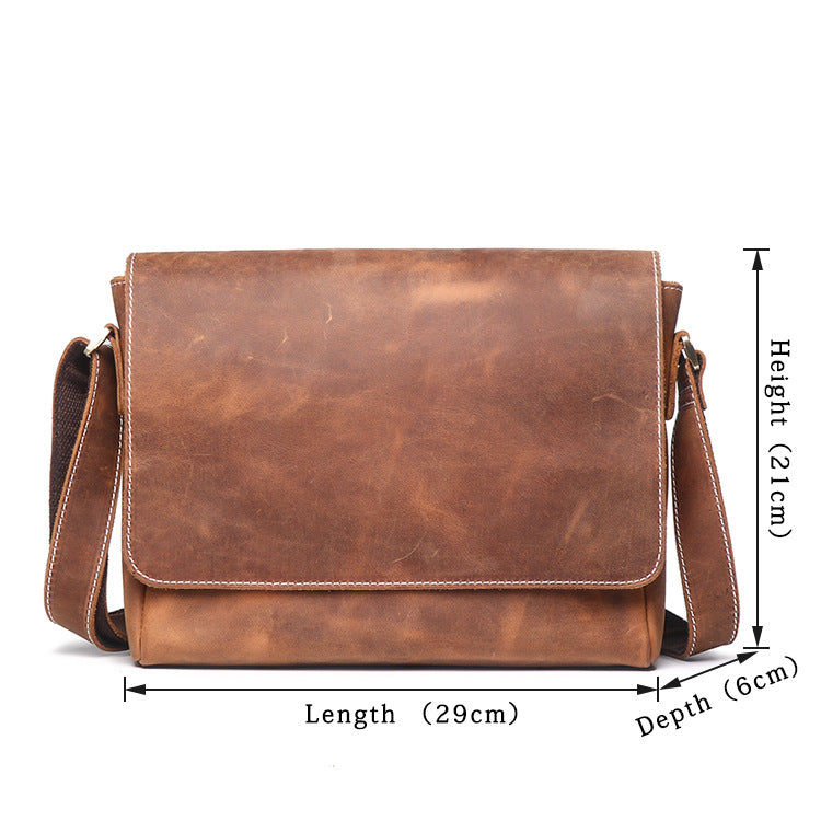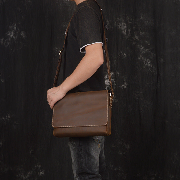 Design: Brown Leather Mens 10 inches Large Laptop Side Bag Dark Brown Messenger Bag Postman Bag For Men