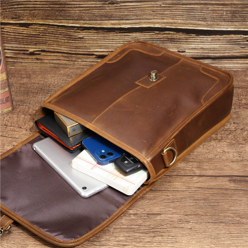 Design: Best Leather Men's Vertical Side Bag 10 inches Vertical iPad Messenger Bag For MenOverview: