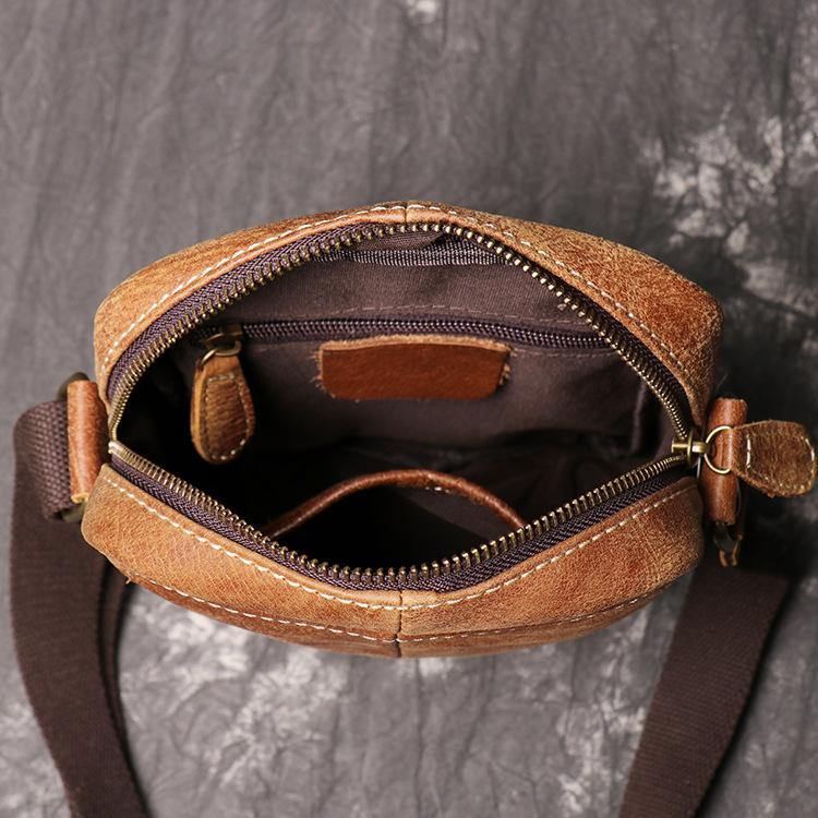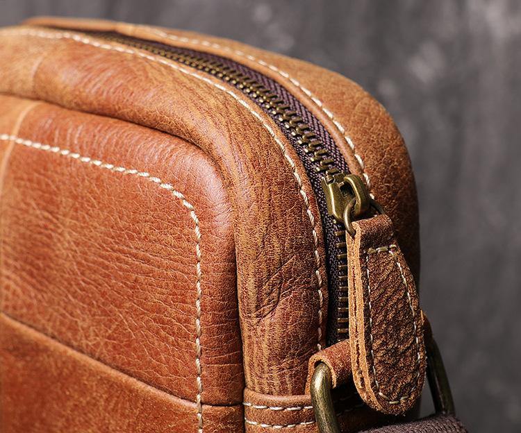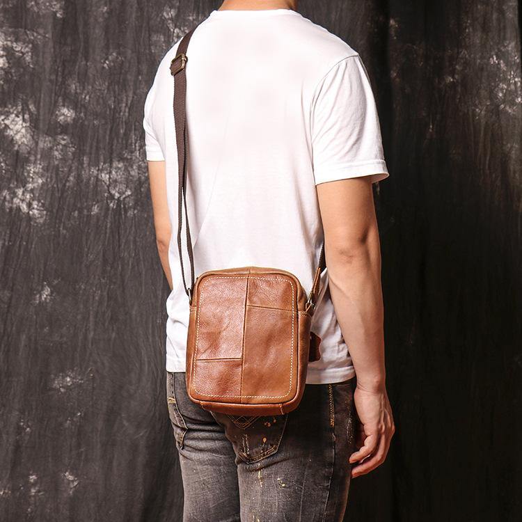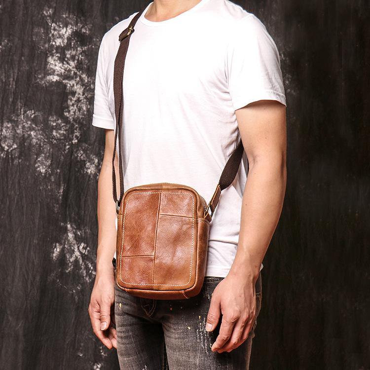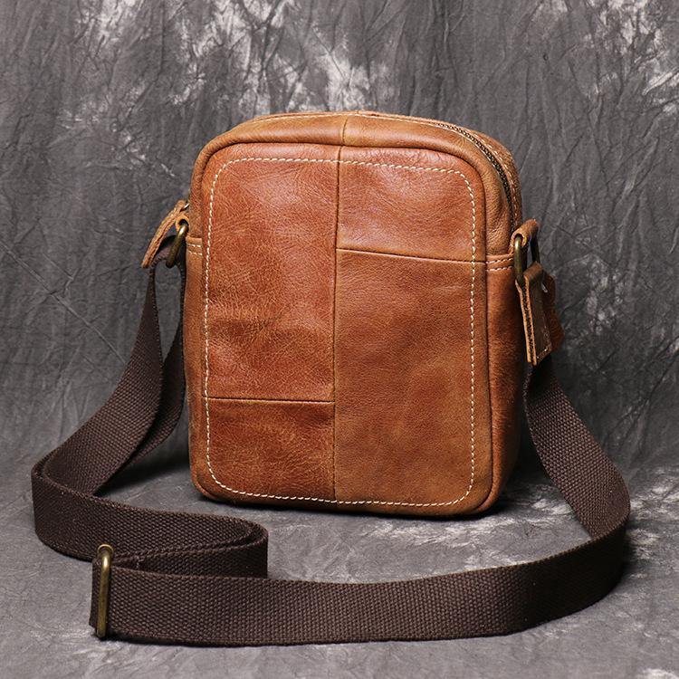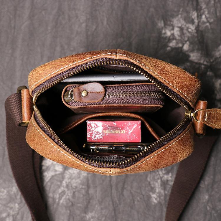 Design: Brown Leather Messenger Bag Men's Royal Blue Side Bag Mini Phone Bag Courier Bag For MenOverview: