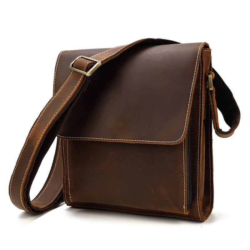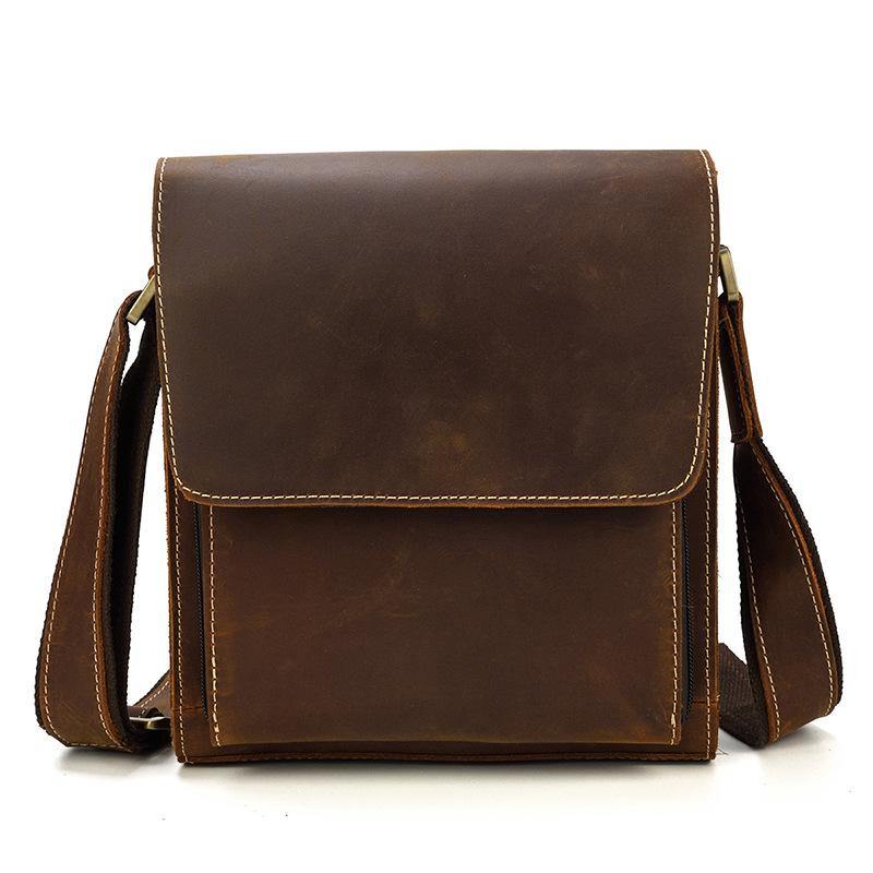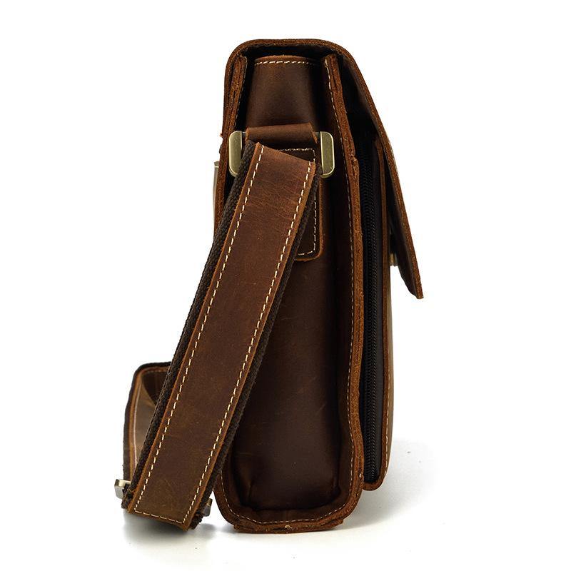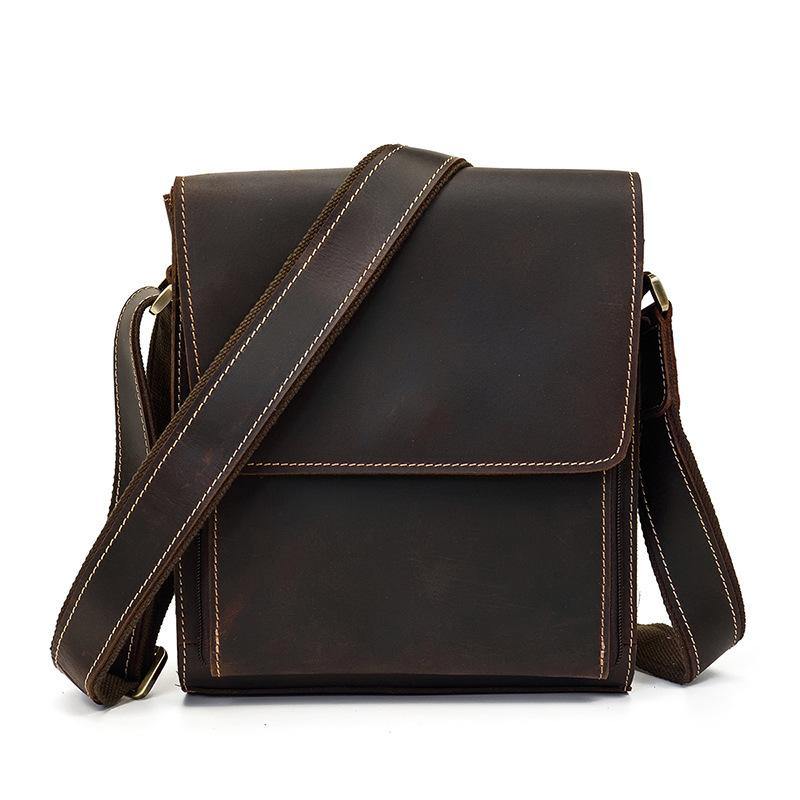 Design: Badass Brown Leather Messenger Bag Men's 10 inches Dark Brown Side Bag Mini Phone Bag Courier Bag For Men