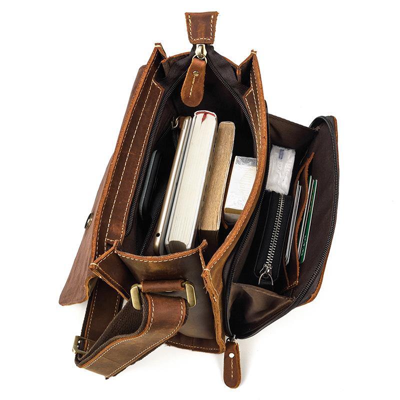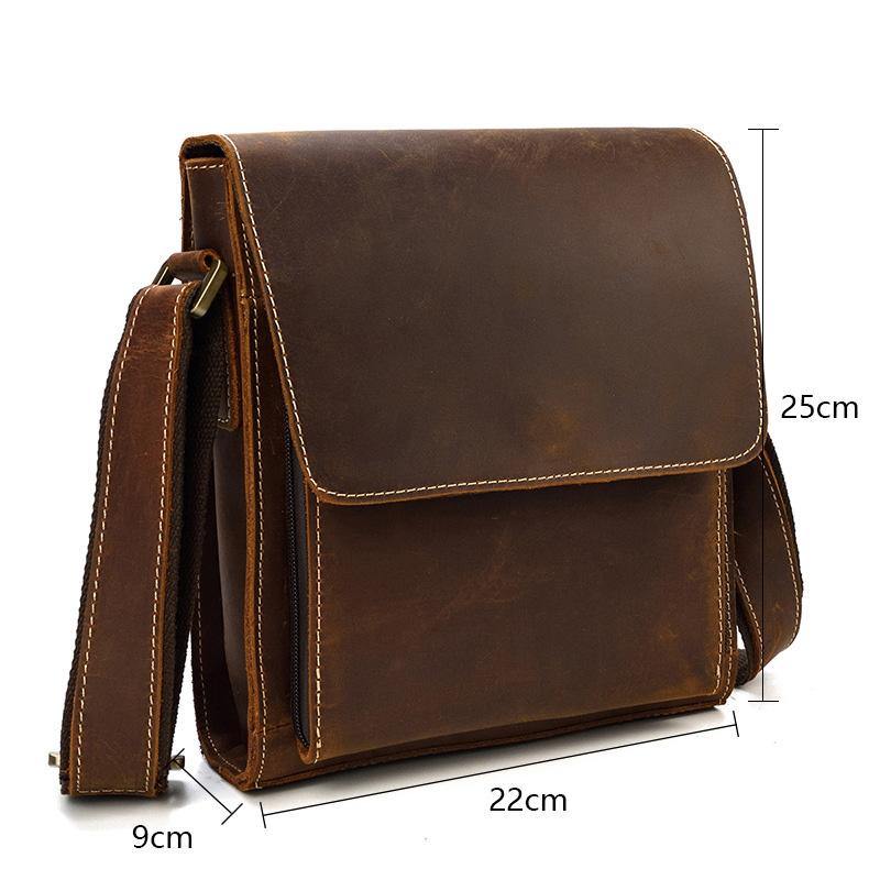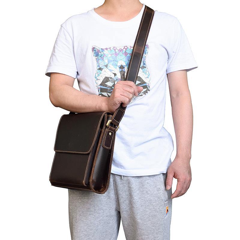 Design: Badass Brown Leather Messenger Bag Men's 10 inches Dark Brown Side Bag Mini Phone Bag Courier Bag For MenOverview: