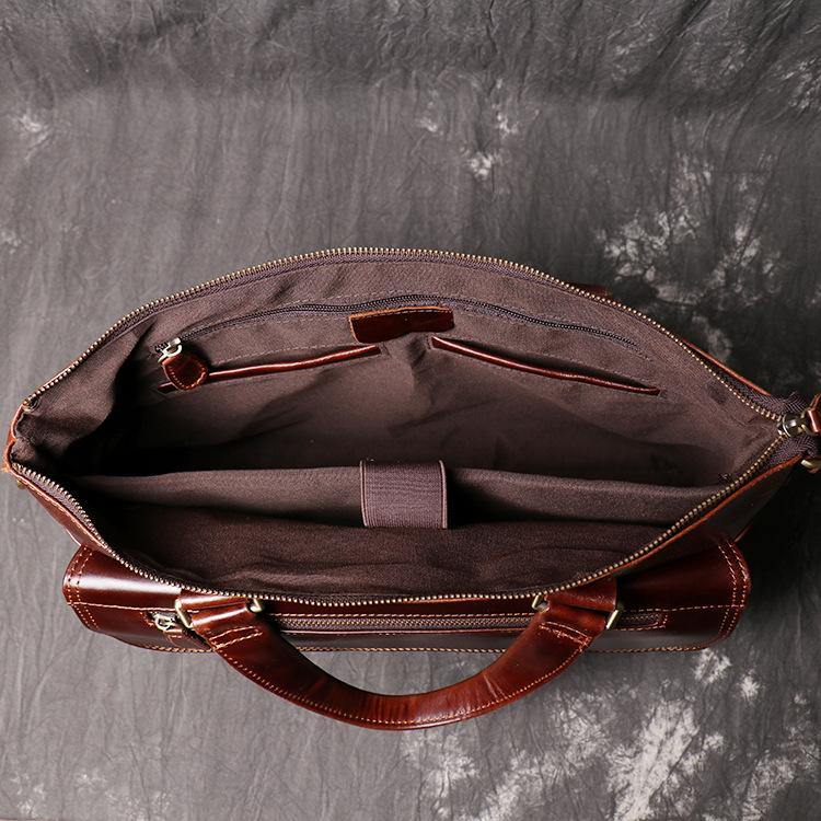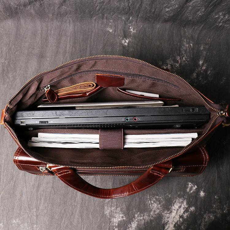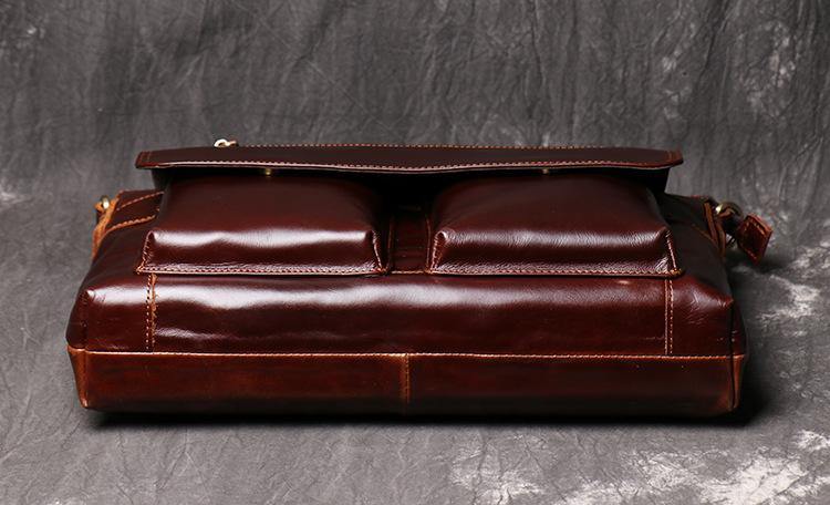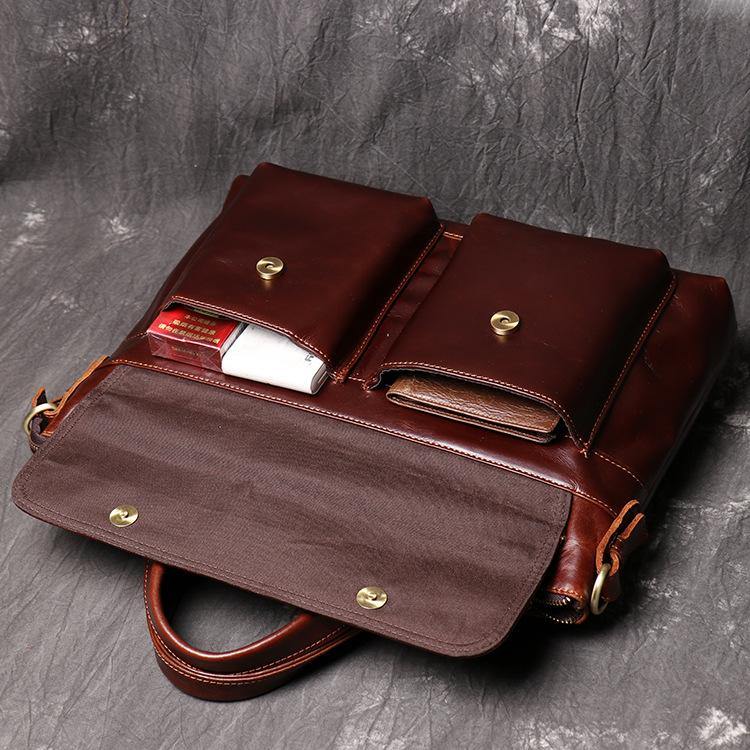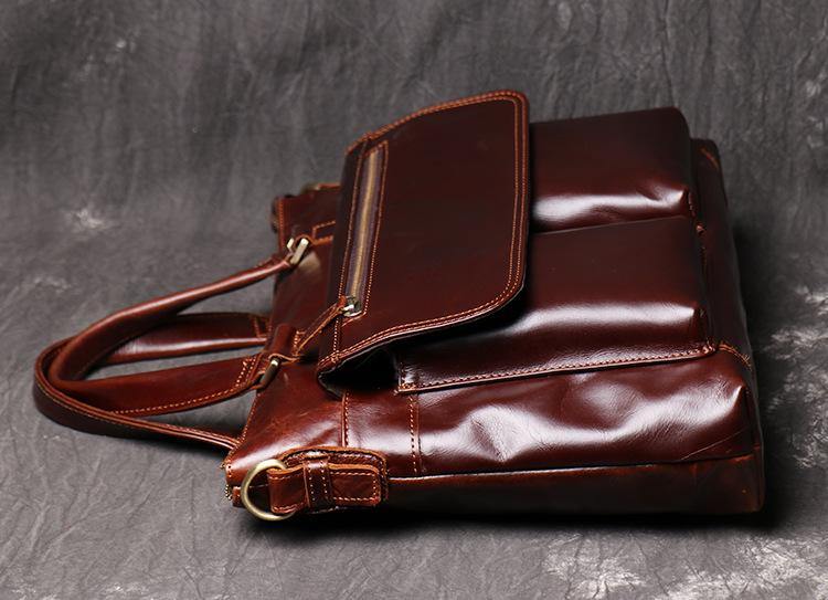Design: Brown Oily Leather Mens 14 inches Large Laptop Work Bag Handbag Briefcase Shoulder Bags Business Bags For MenOverview: