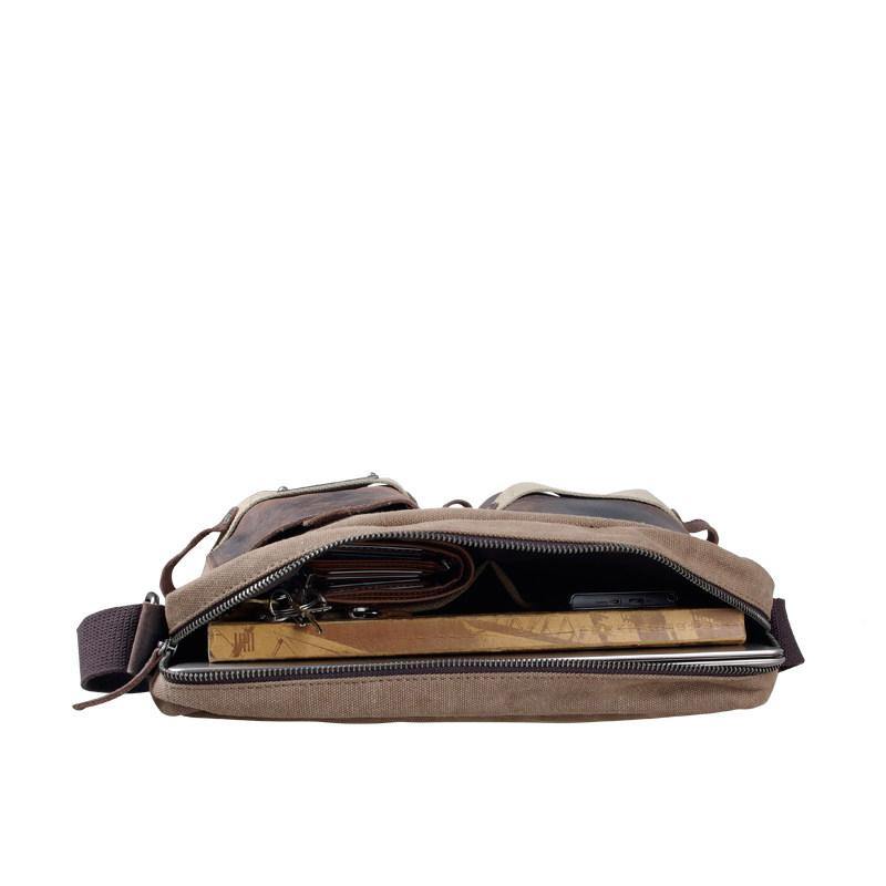 Style: Brown Retro Canvas Leather Mens Side Bags Messenger Bags Army Green Canvas Courier Bag for Men